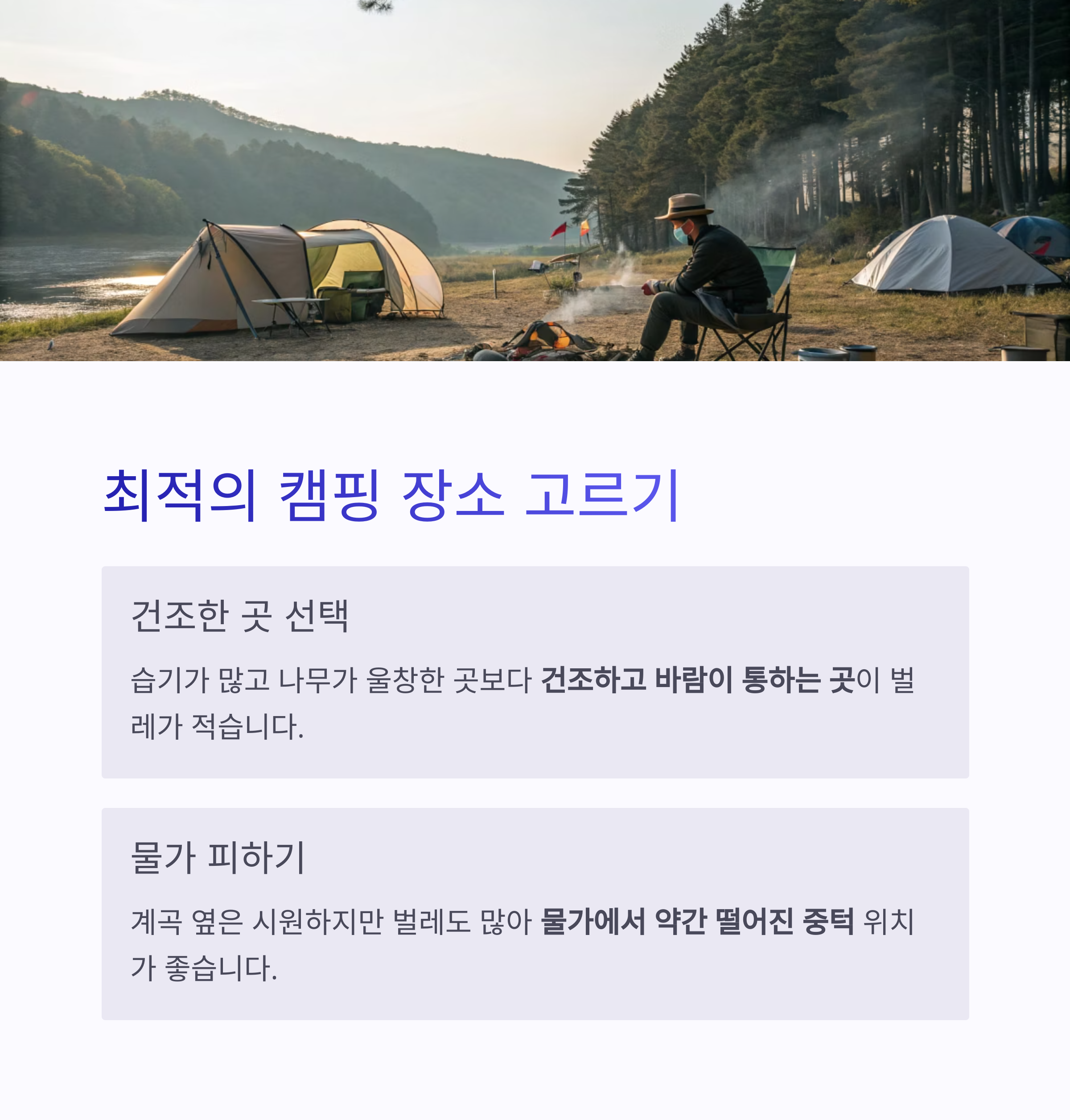 이 글에서는 여름철 자연 속에서도 안전하고 쾌적한 캠핑을 즐길 수 있도록