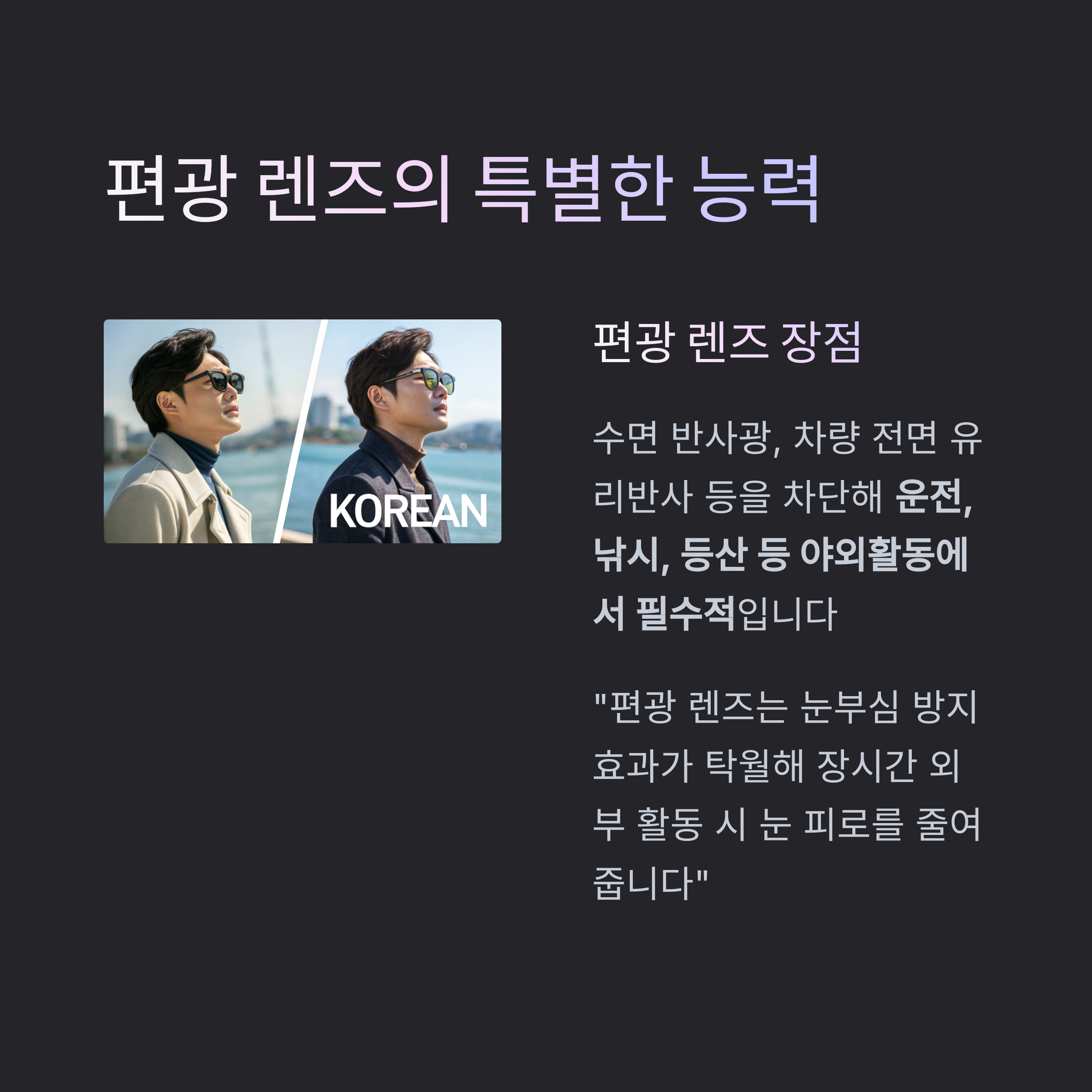 "편광 렌즈는 눈부심 방지 효과가 탁월해