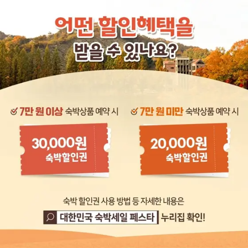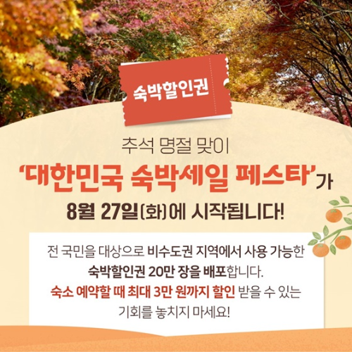 여행도, 할인도 한 번에! 2024 대한민국 숙박세일 페스타 추석 연휴 여행 준비 완료! 최대 3만 원 할인