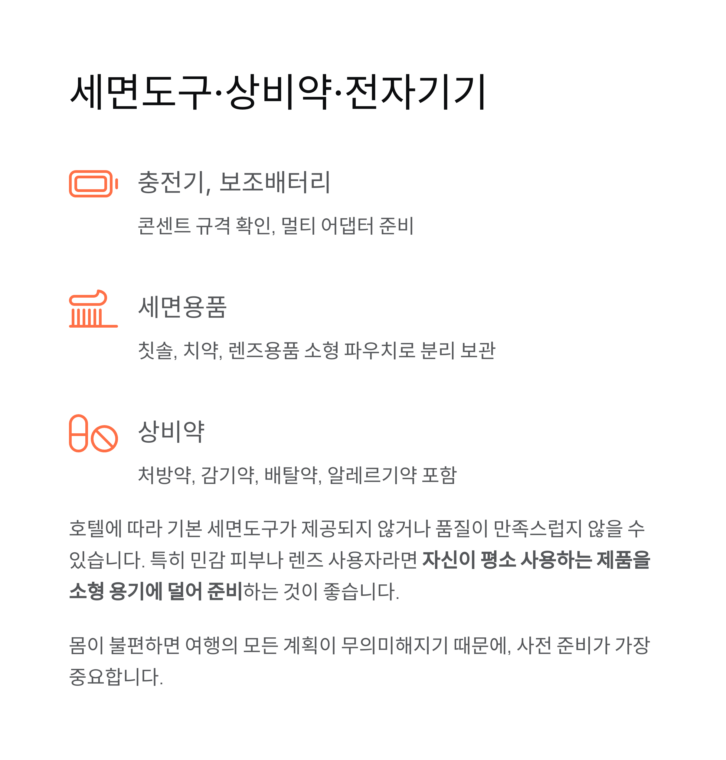 사소한 준비 부족이 여행 전체의 만족도를 떨어뜨릴 수 있기 때문입니다.