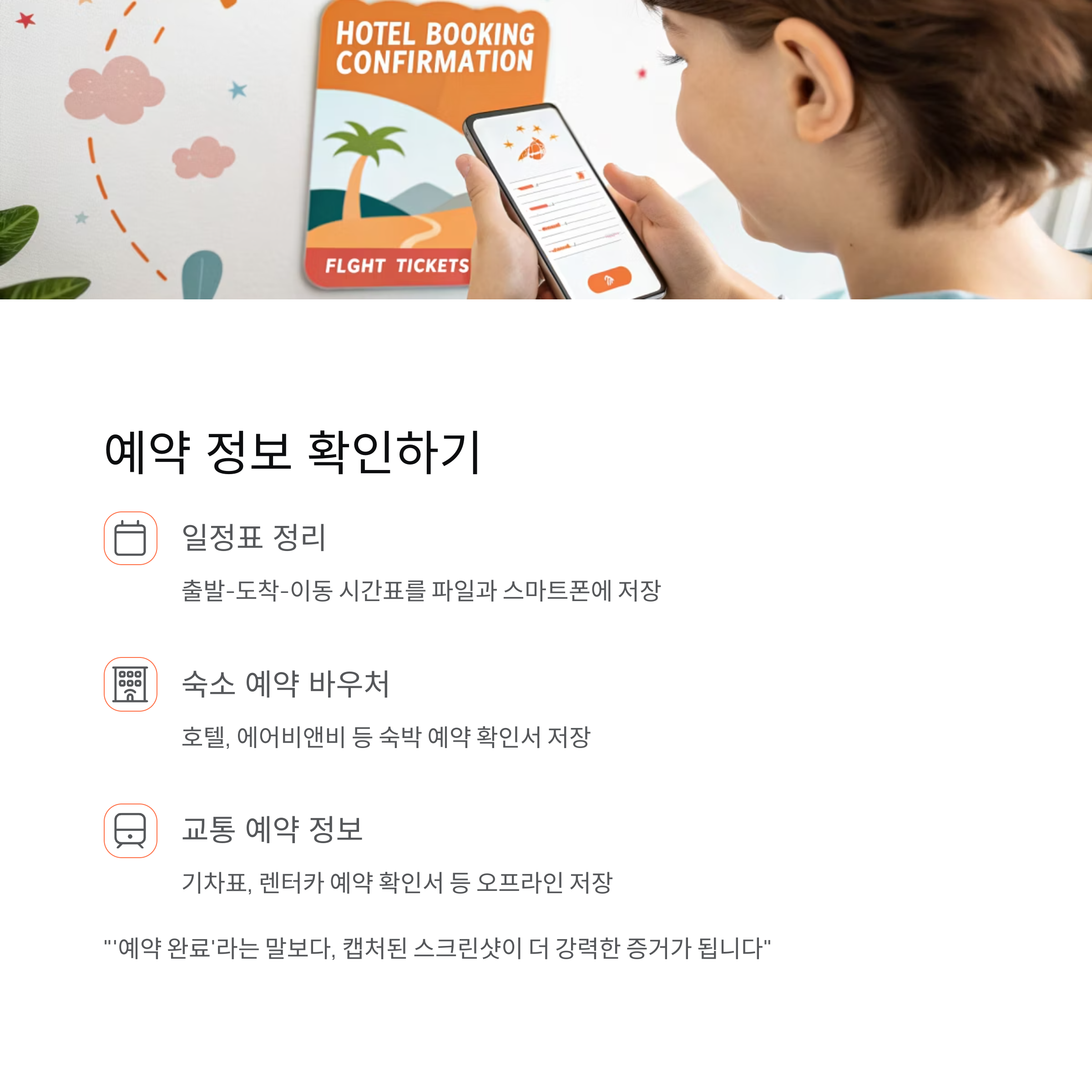 또한 숙소 예약 바우처, 기차표, 렌터카 예약 확인서 등은 오프라인 저장까지 이중 확보하면