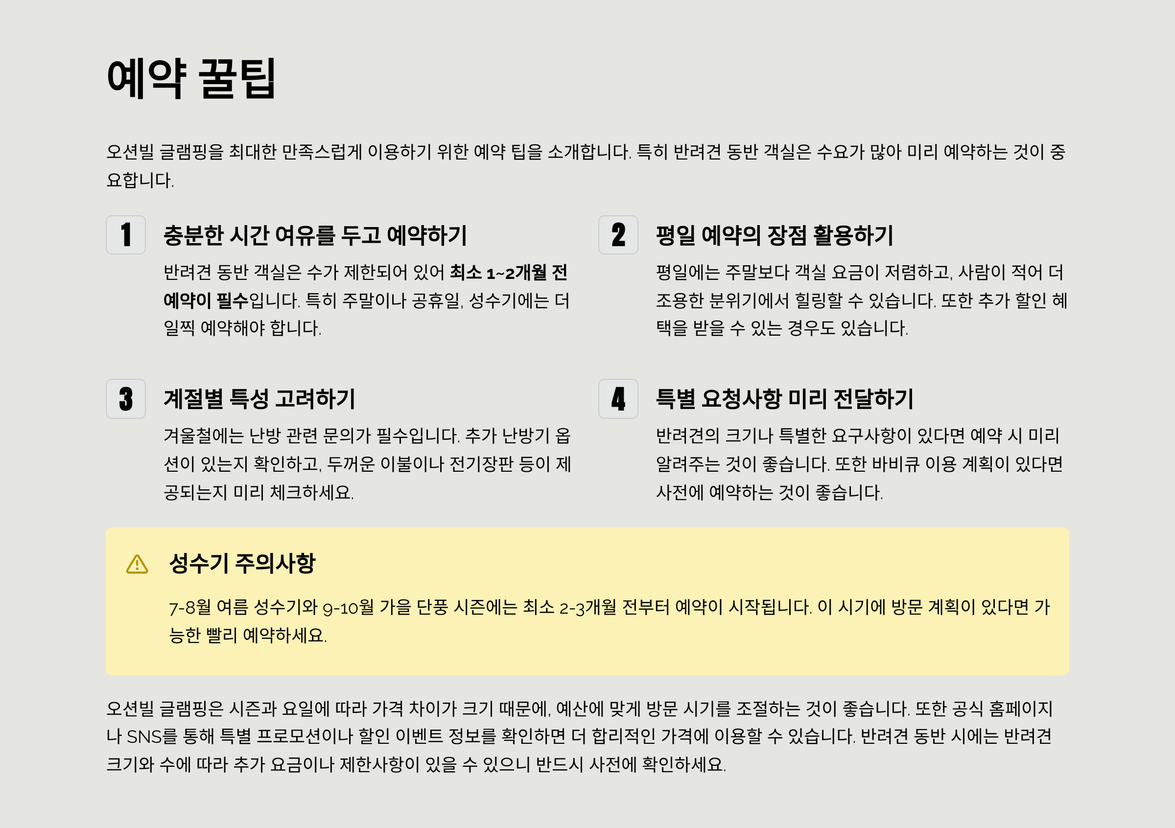 - 반려견 동반 객실은 수가 적어 최소 1~2개월 전 예약 필수