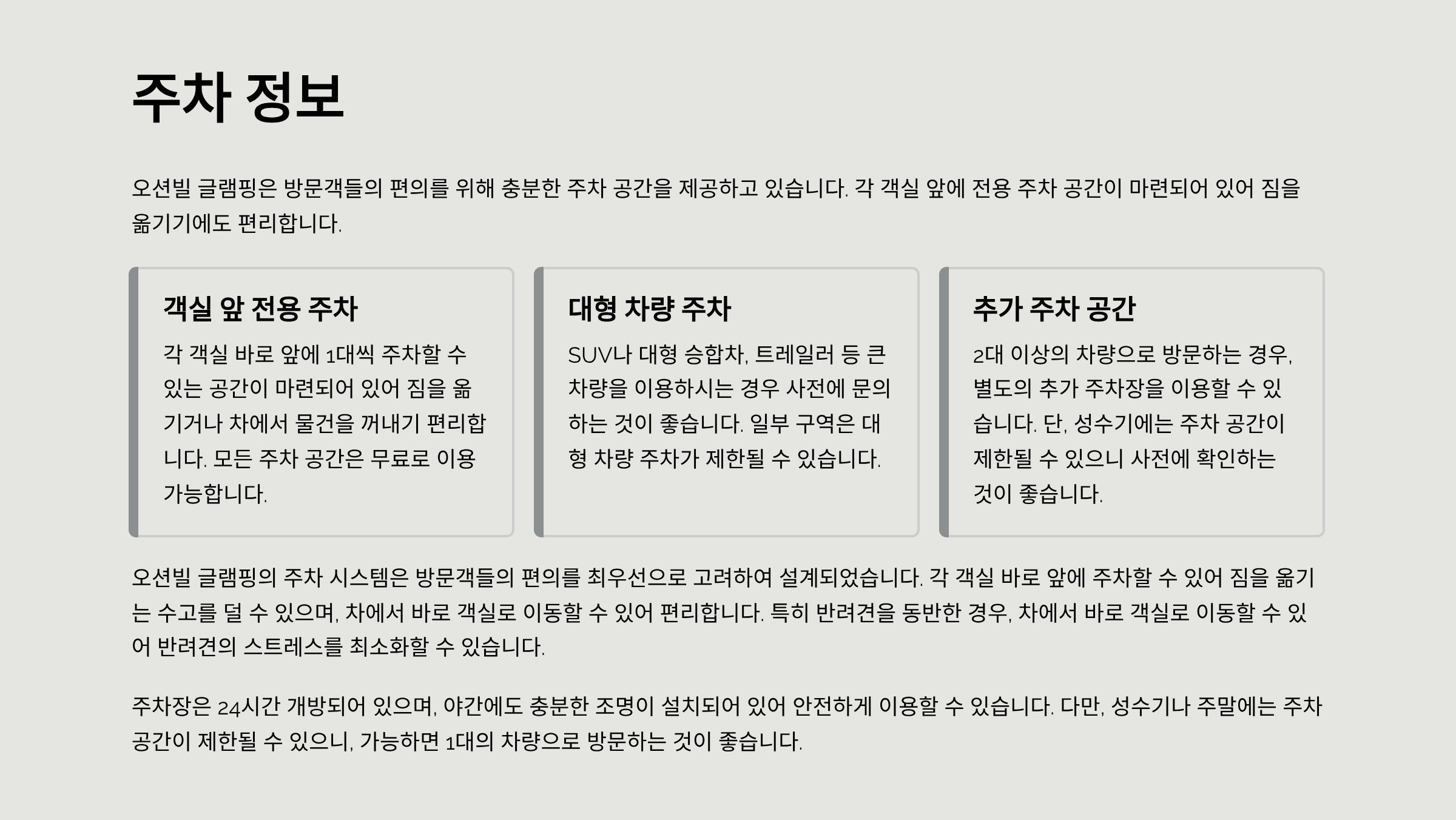 | 주차 | 전 객실 앞 무료 주차 |