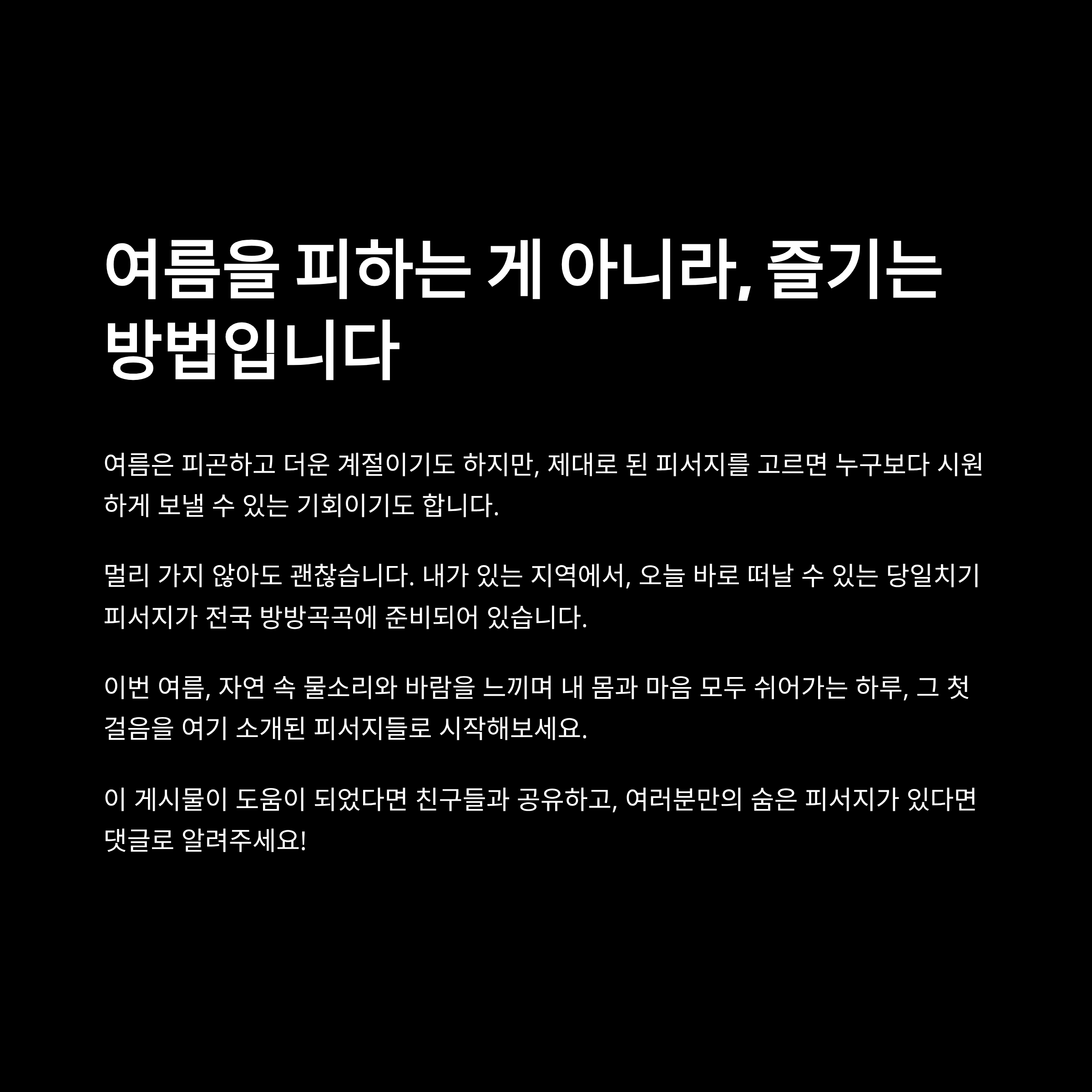 그 첫걸음을 여기 소개된 피서지들로 시작해보세요.