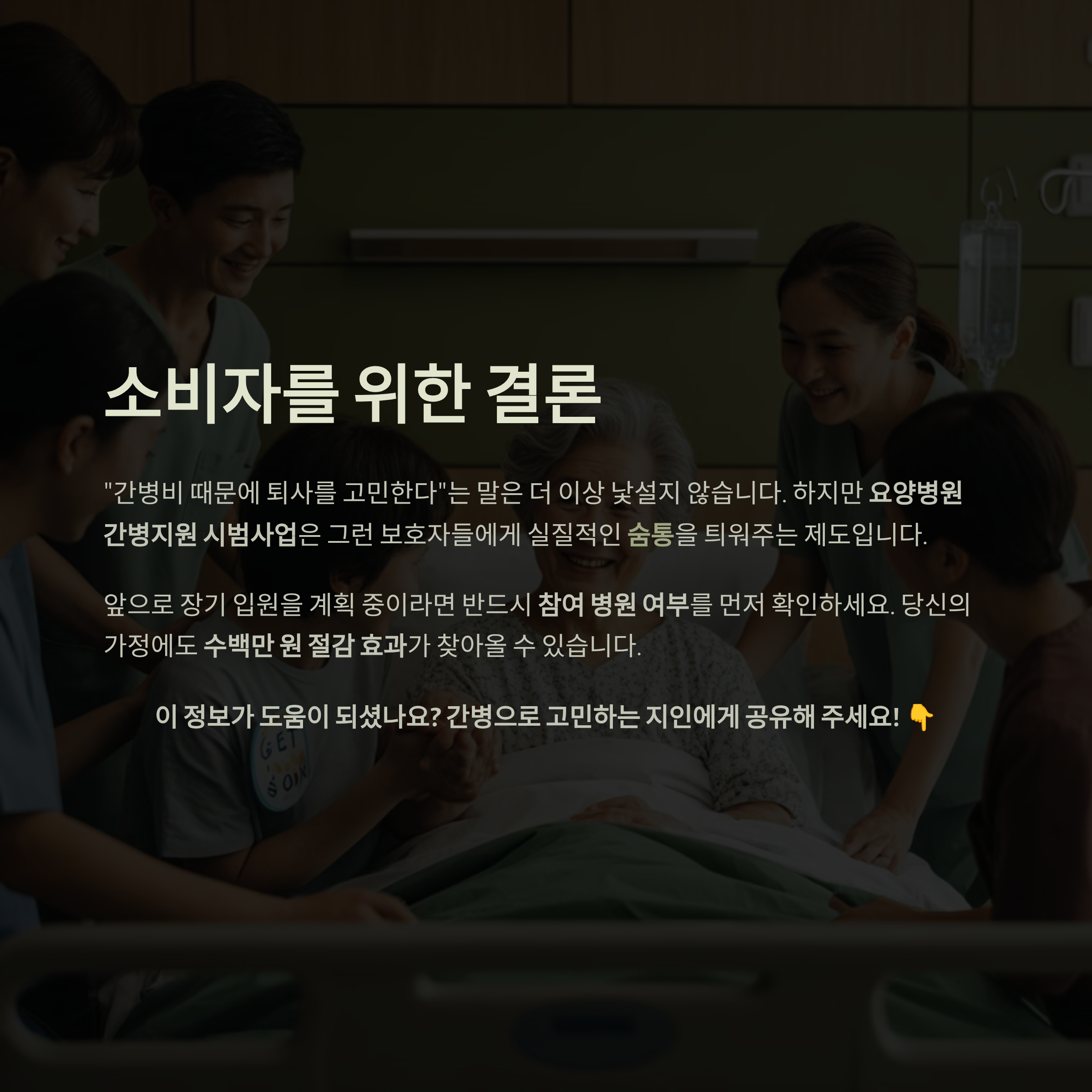 👉 이를 해결하기 위해 정부가 추진하는 것이 바로 **‘요양병원 간병지원 시범사업’**입니다.