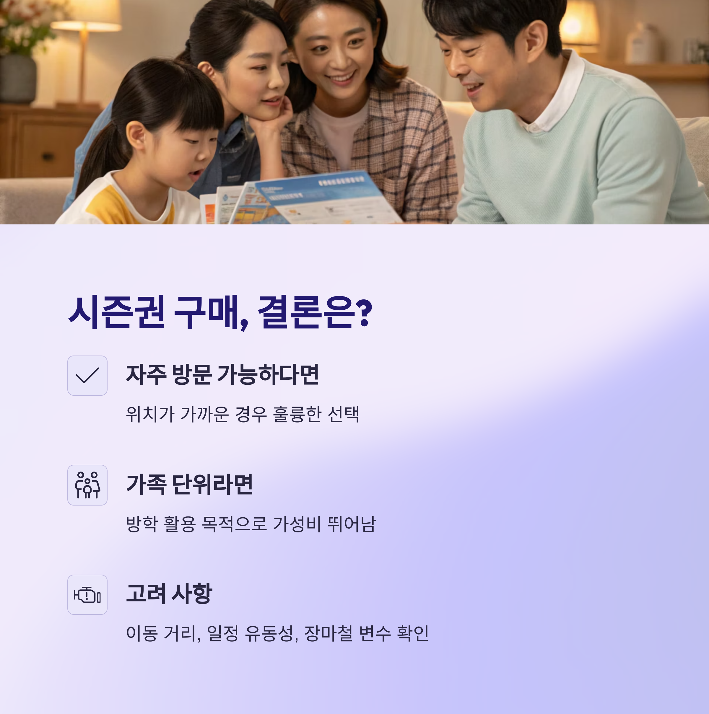 자주 방문할 수 있고 위치가 가까운 경우라면 시즌권은 훌륭한 선택입니다.