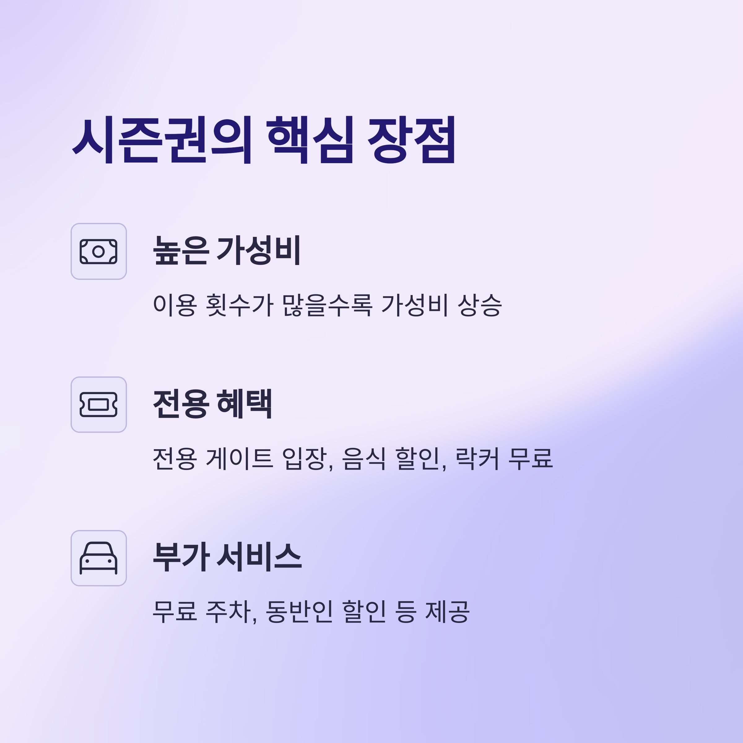 아래 표는 시즌권이 제공하는 주요 혜택입니다.