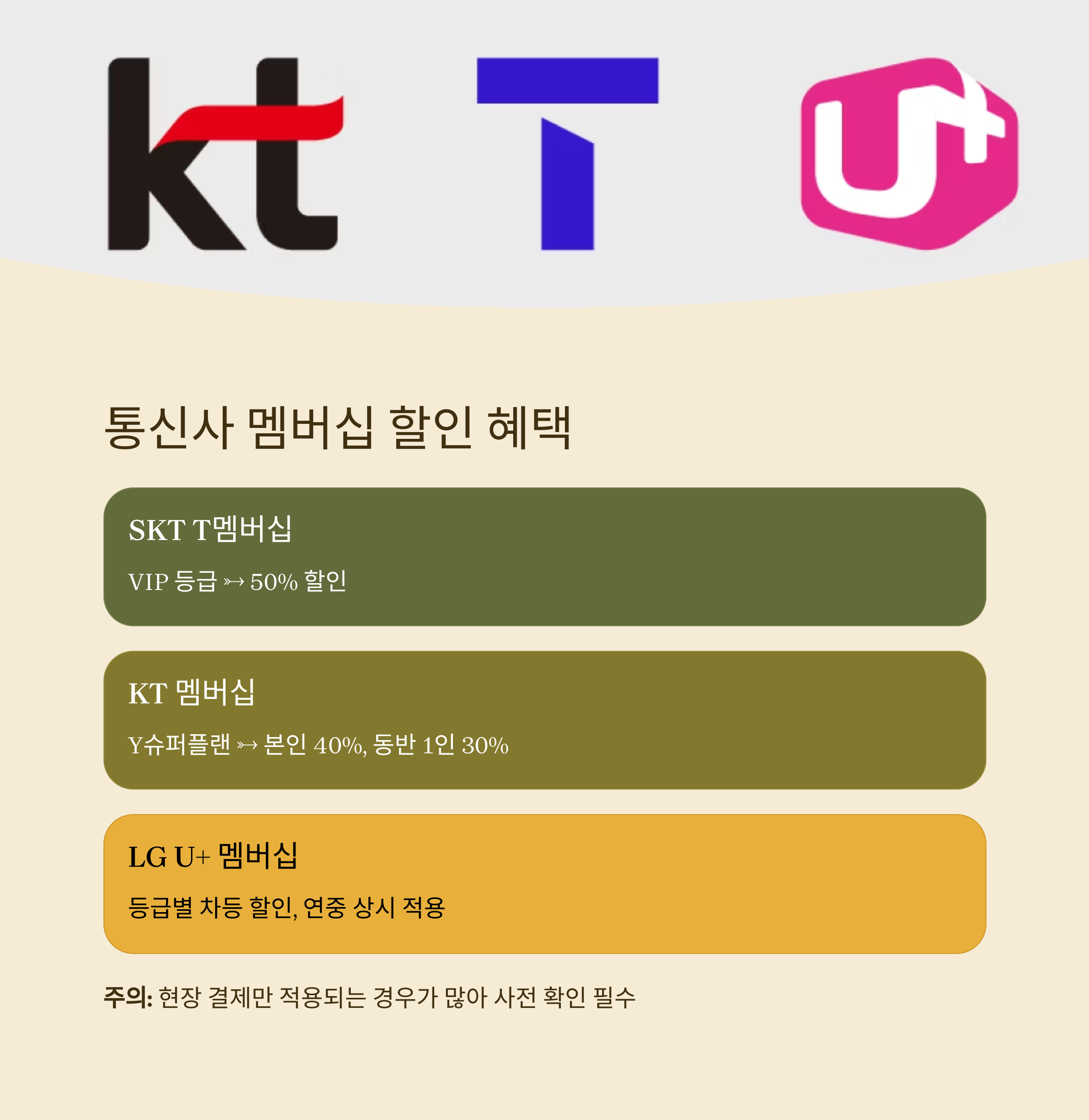 통신사 멤버십 가족 단위 20~50% 현장 결제 조건