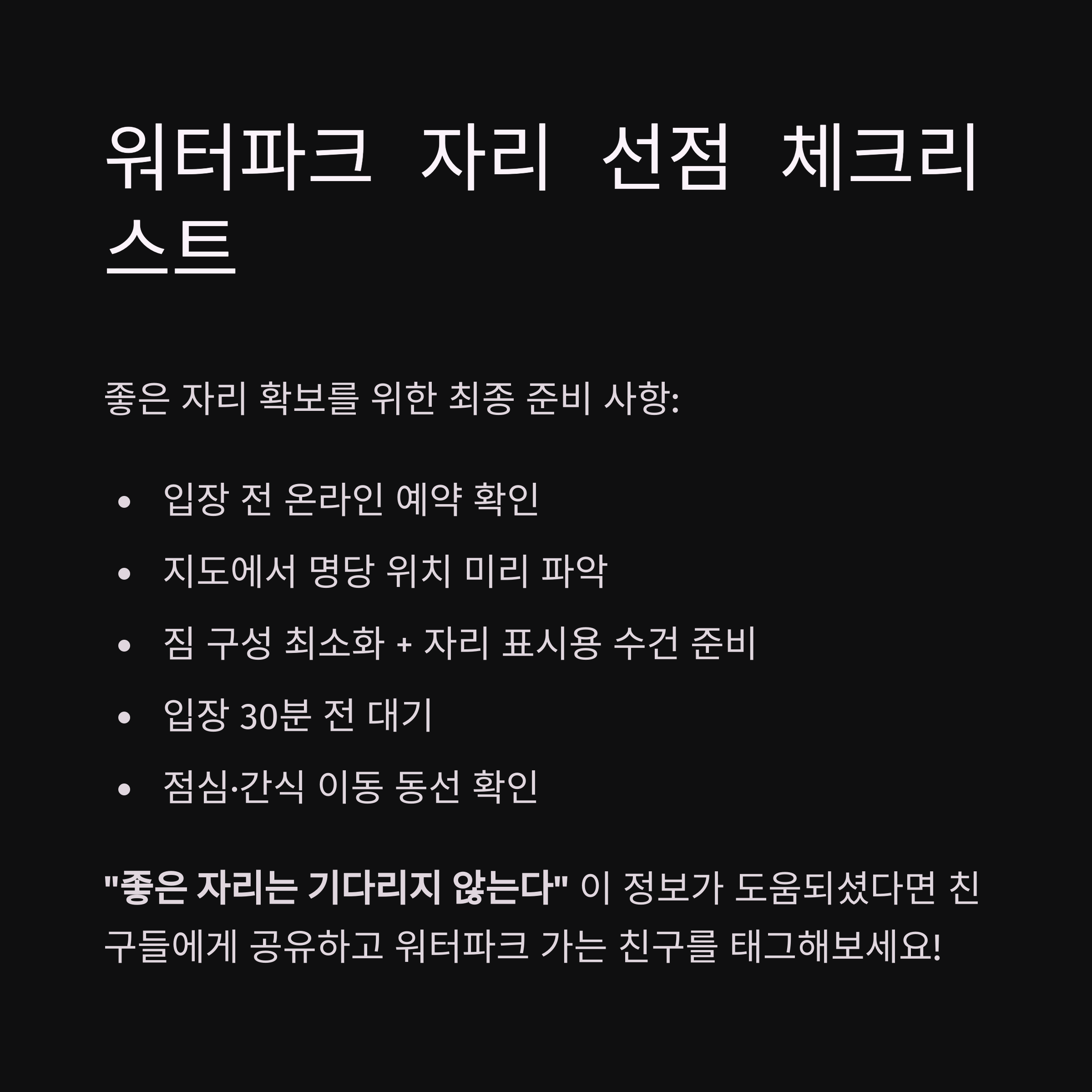 이번 글에서는 워터파크 좌석 유형부터 예약 요령, 현장 꿀팁까지