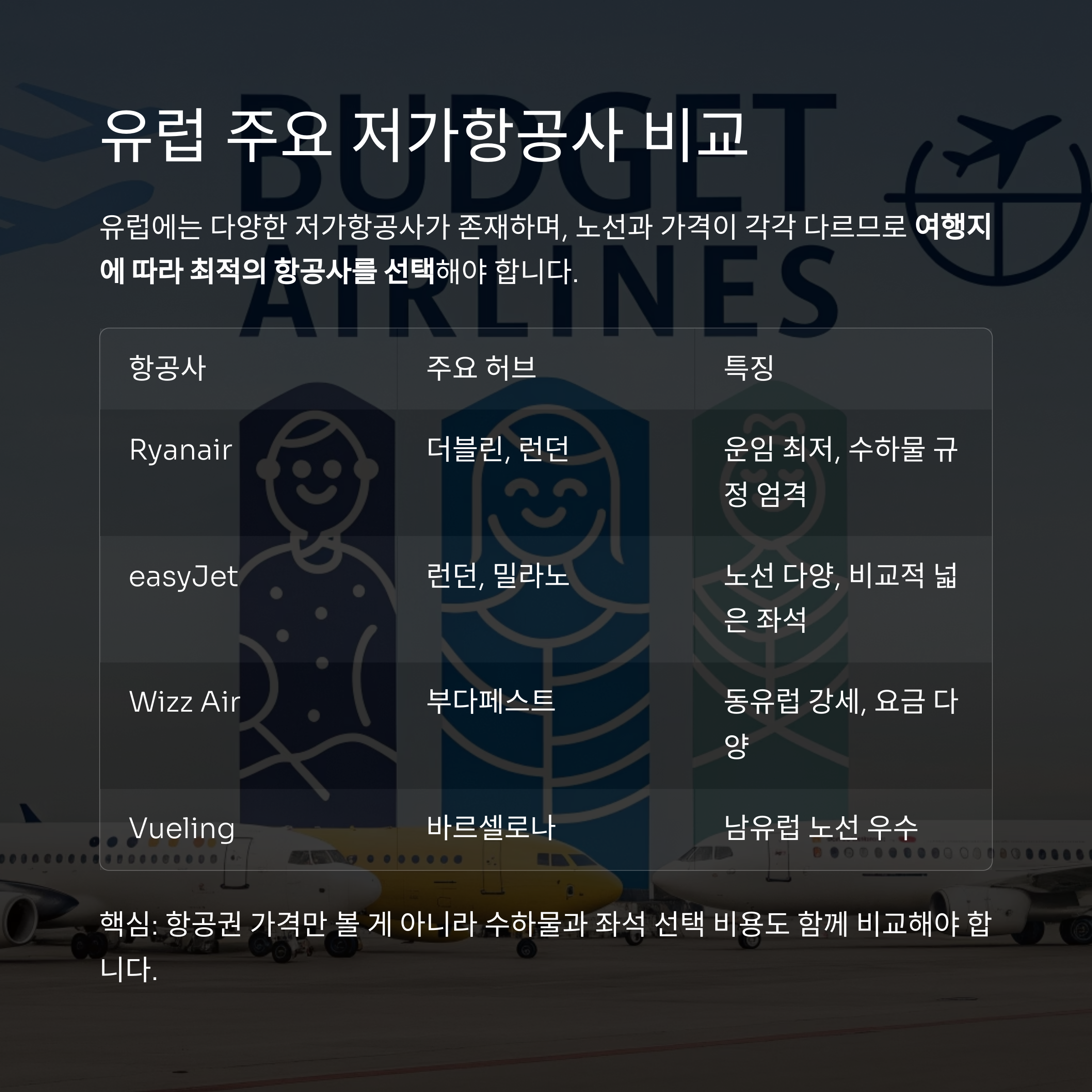 | Wizz Air | 부다페스트 | 동유럽 강세, 요금 다양 |