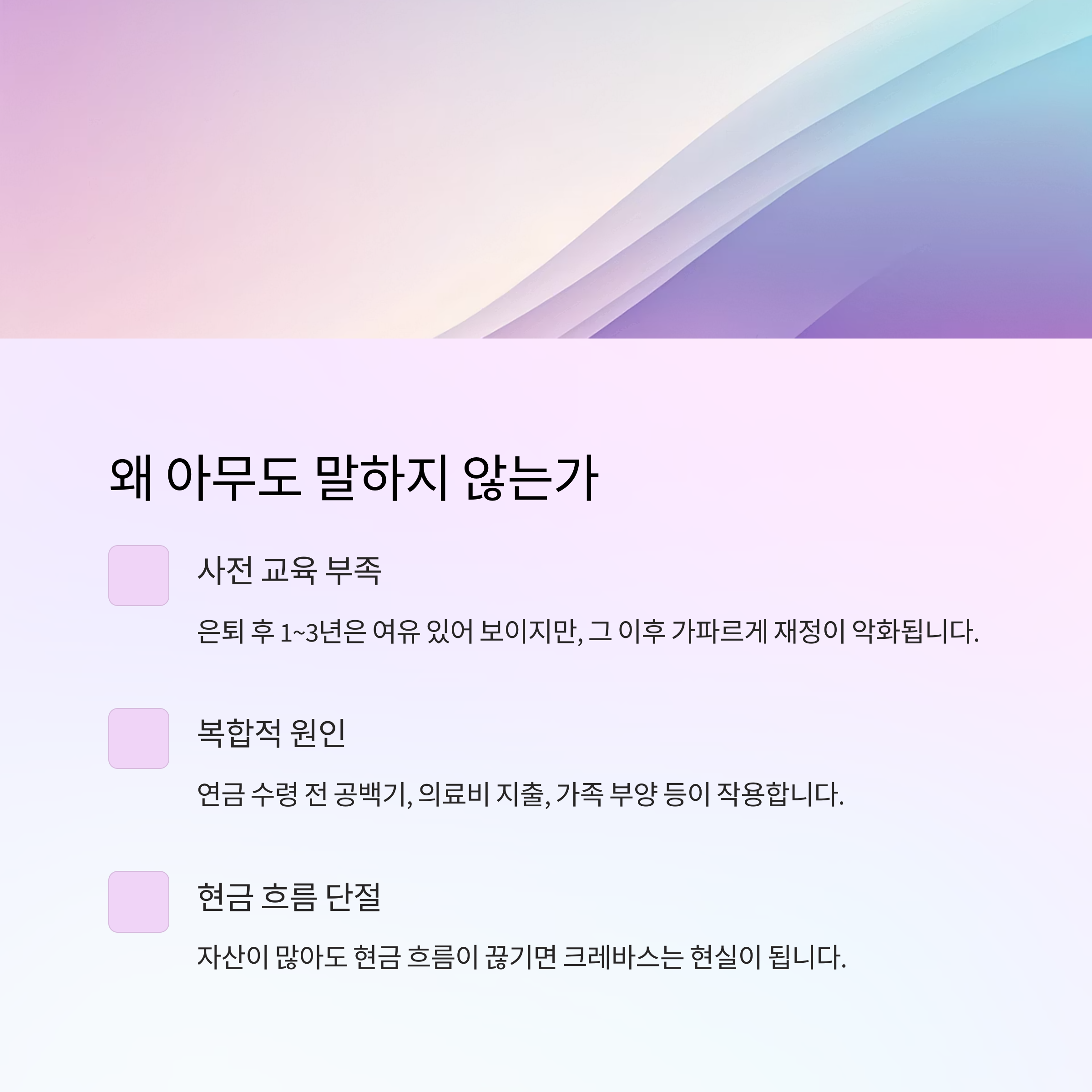은퇴 크레바스는 준비 부족이 아닌 구조적 위험입니다.
