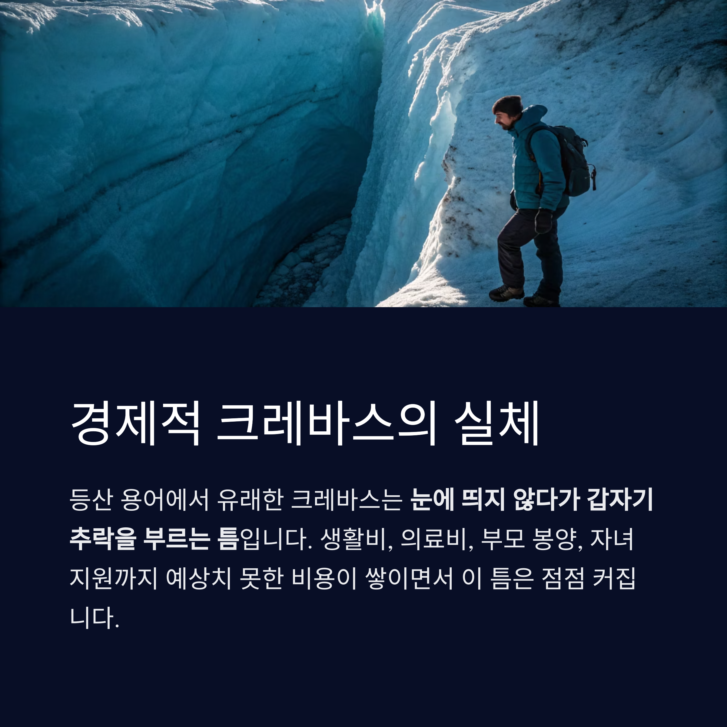 경제적 크레바스도 마찬가지로, 눈에 띄지 않다가 갑자기 추락을 부르는 틈입니다.