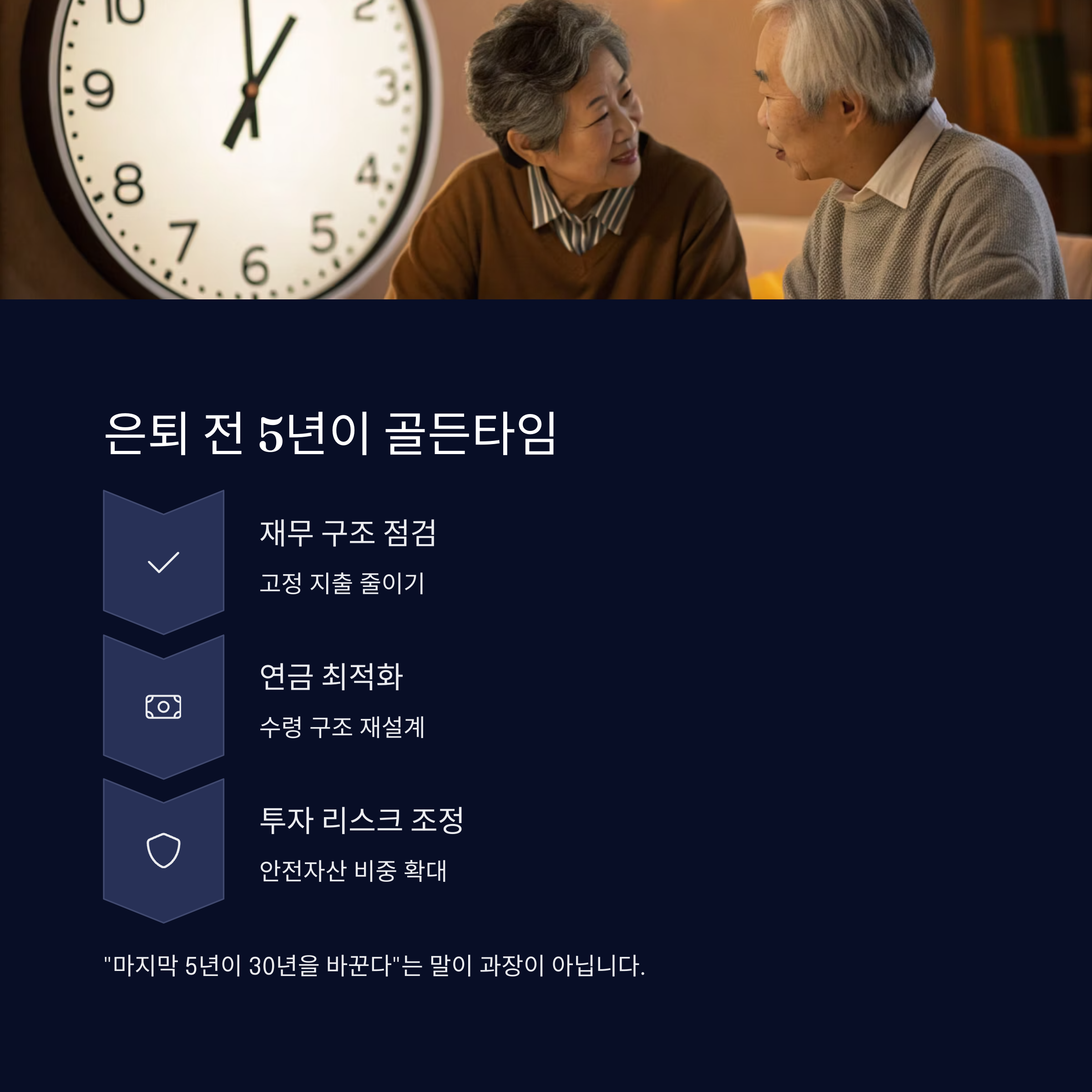 은퇴 직전 5년은 재무 구조를 점검할 수 있는 골든타임입니다.