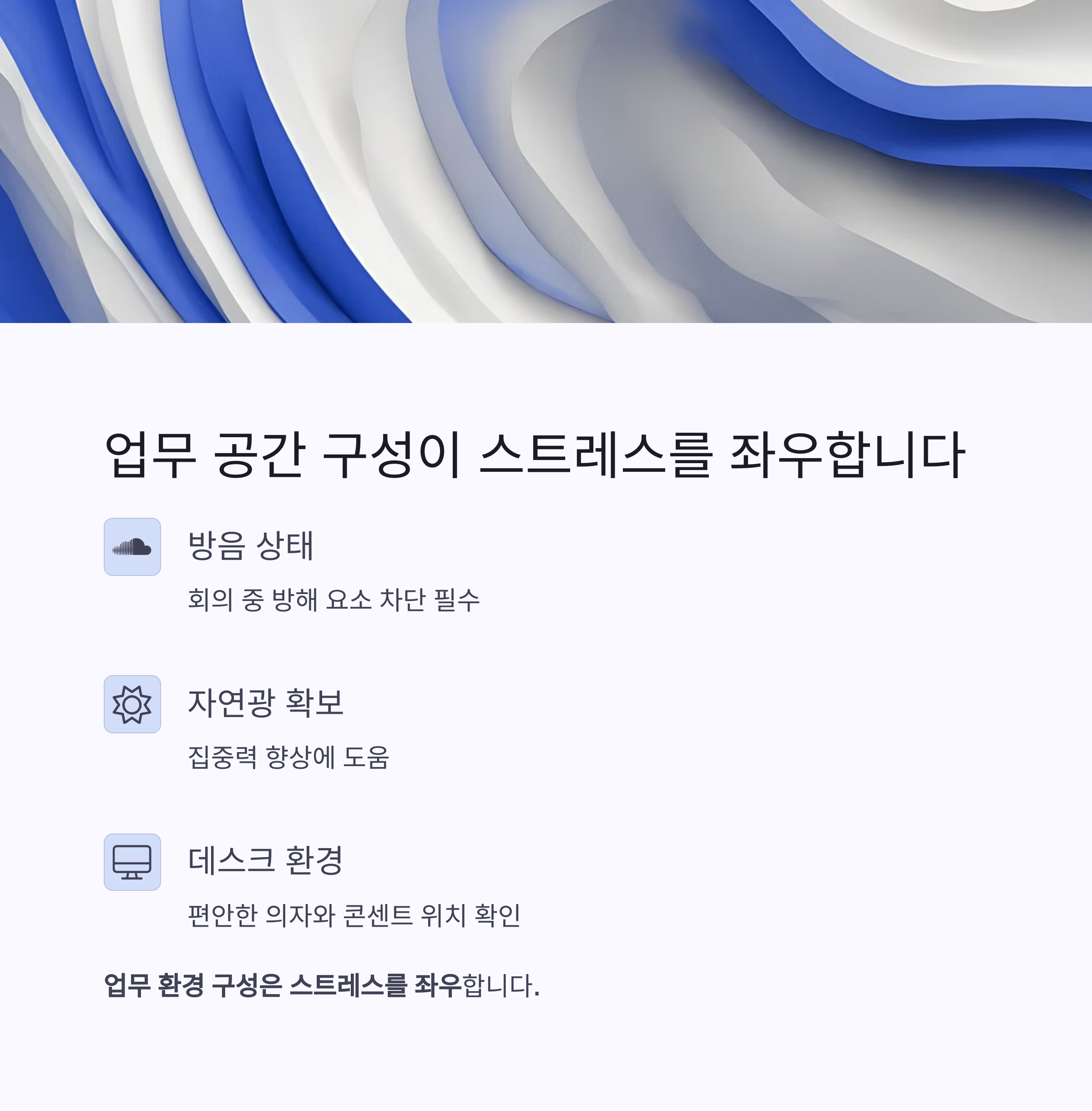 방음, 채광, 책상 구조… 업무 공간도 중요합니다