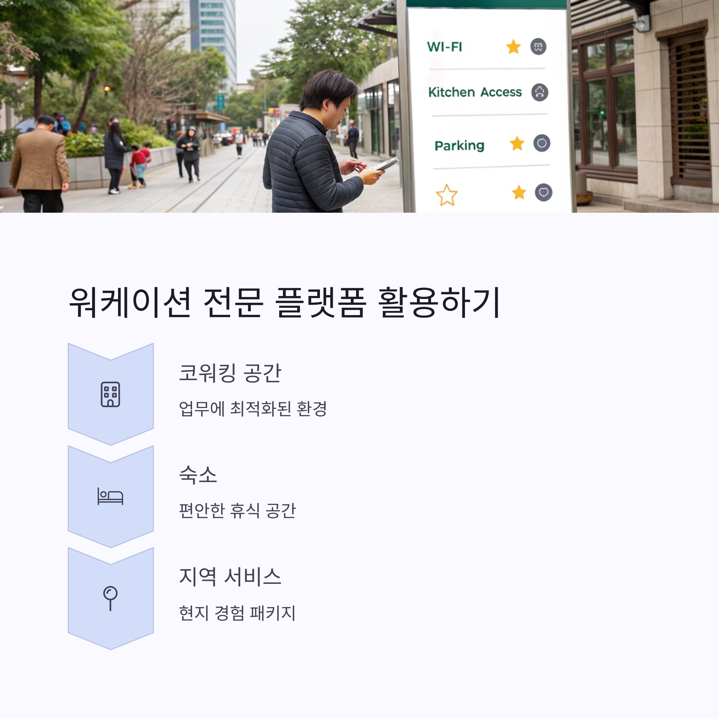 일부 워케이션 전문 플랫폼은 코워킹 공간+숙소+지역 서비스를 패키지로 제공합니다