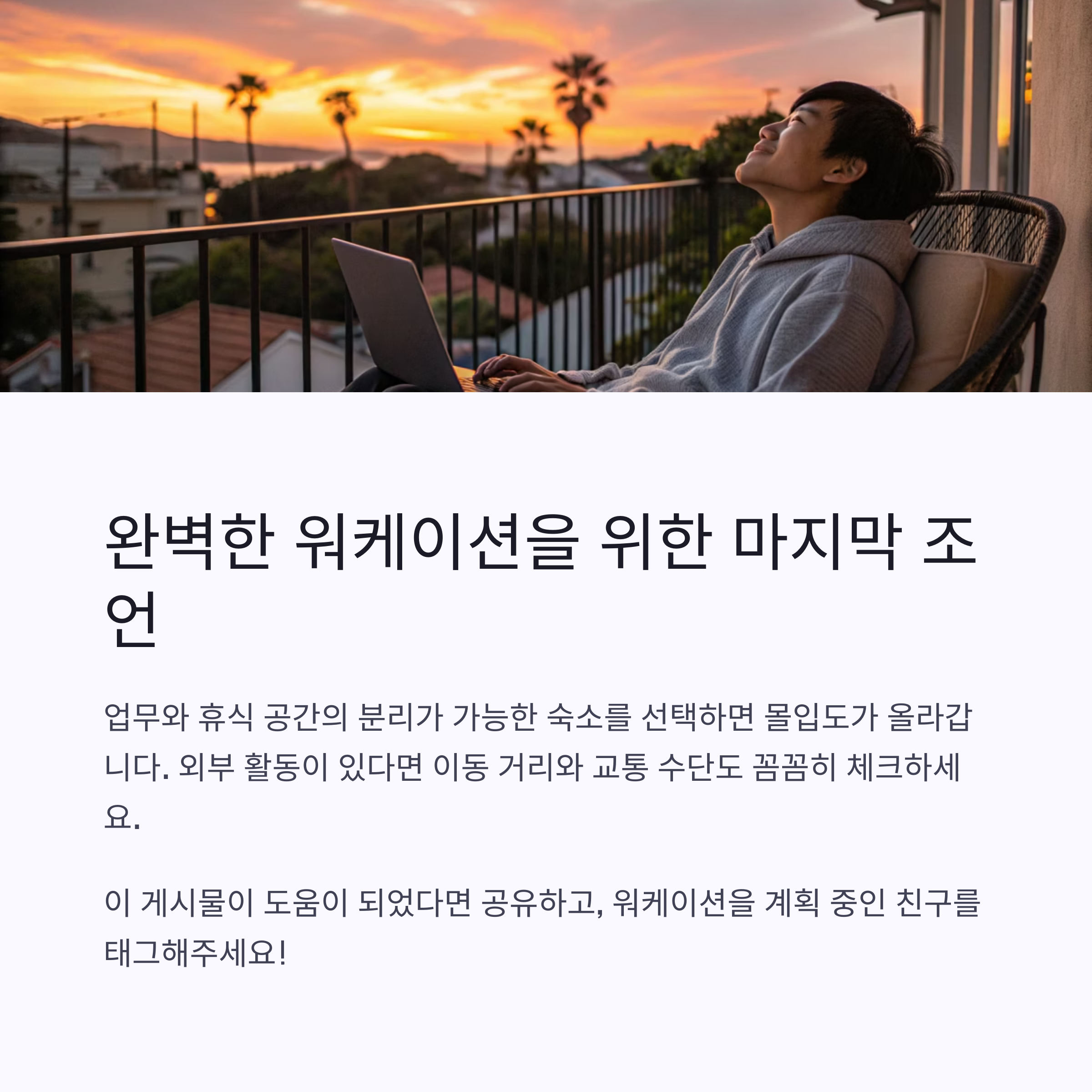 이 글에서는 실제 워케이션 경험에 기반한 숙소 선택 전략을 소개합니다