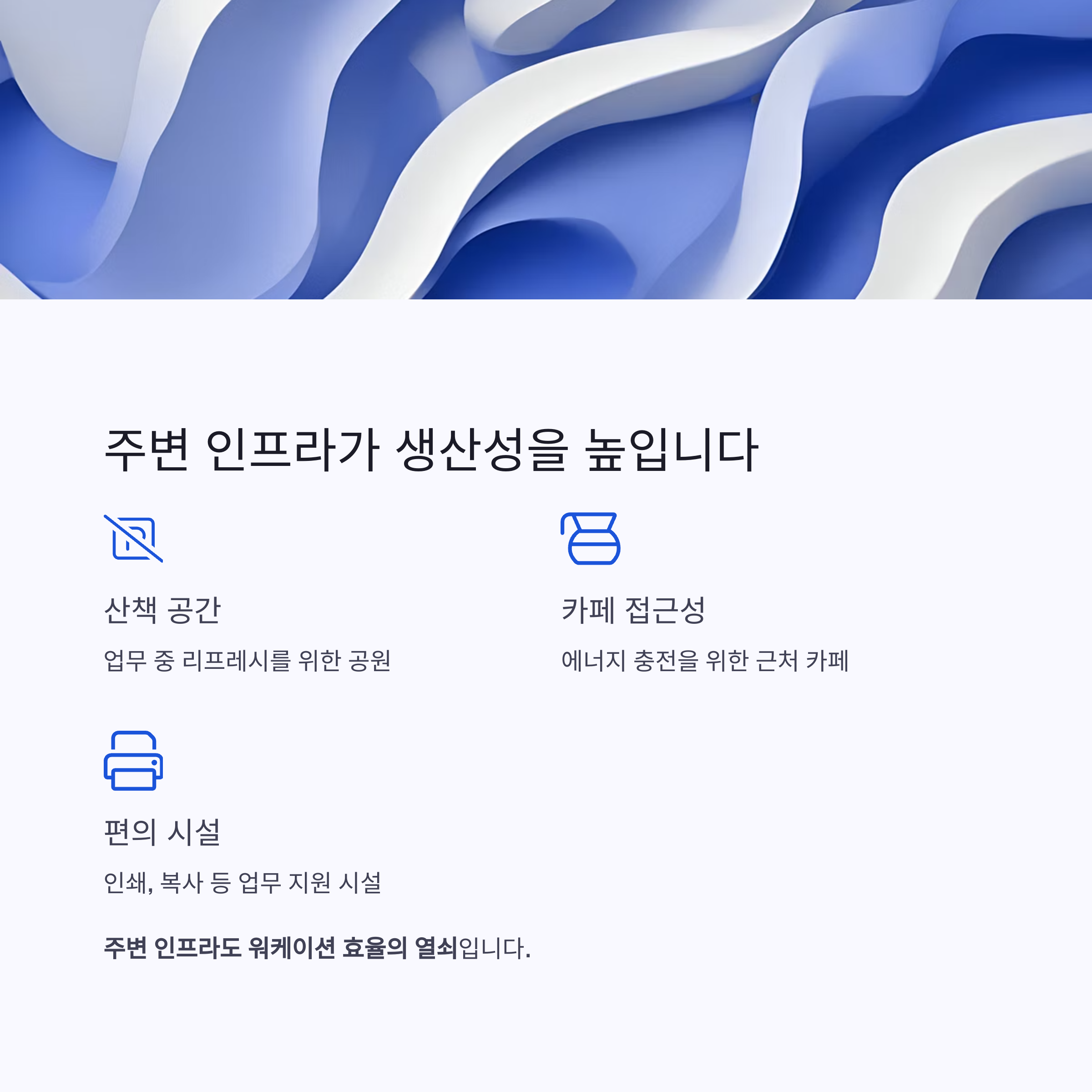 업무 환경 보장이 중요한 분에게 특히 유리하며, 사전 답사 및 매니저 상담도 가능