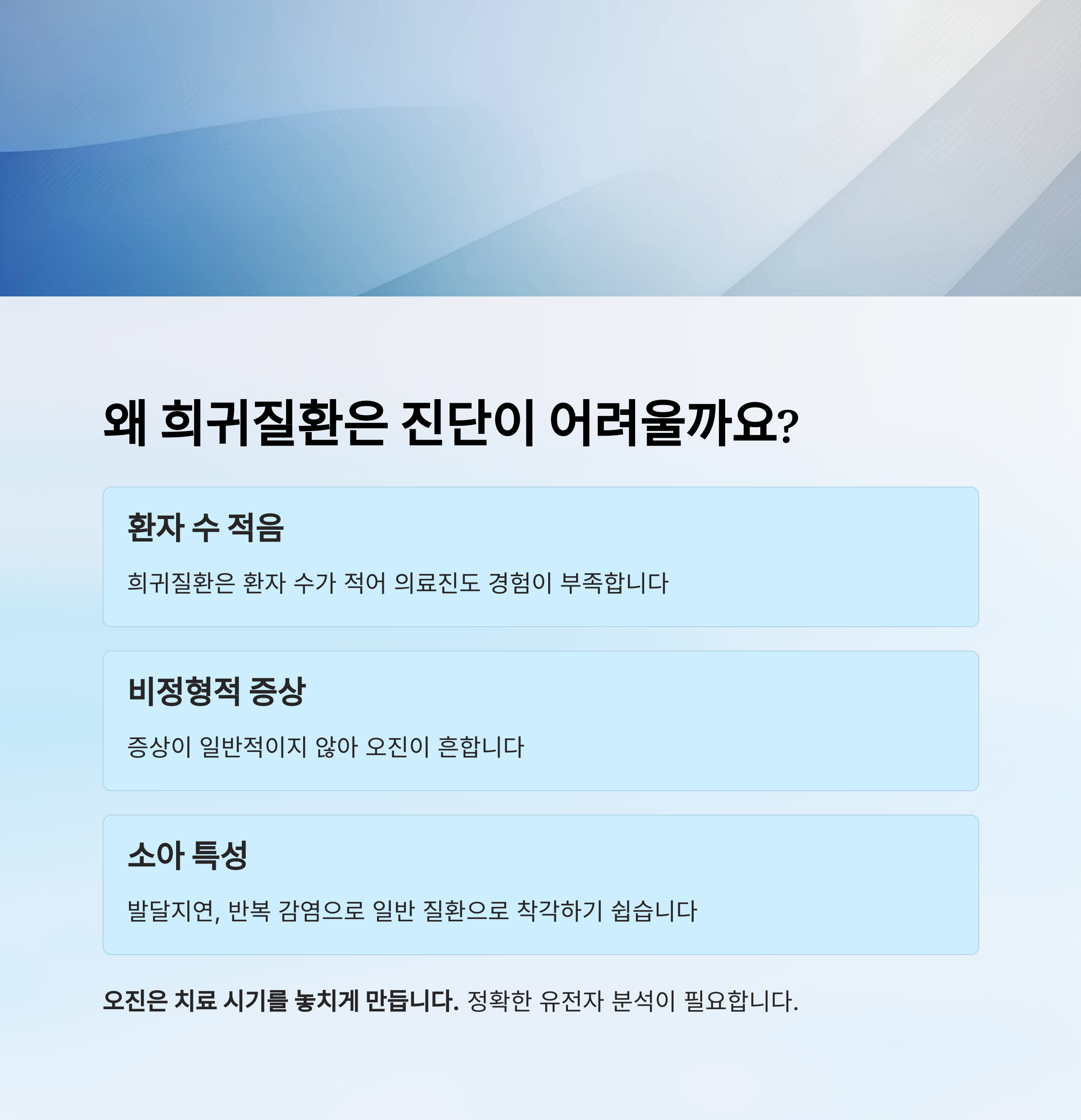 희귀질환은 환자 수가 적고, 증상도 비정형적이라 오진이 흔합니다.