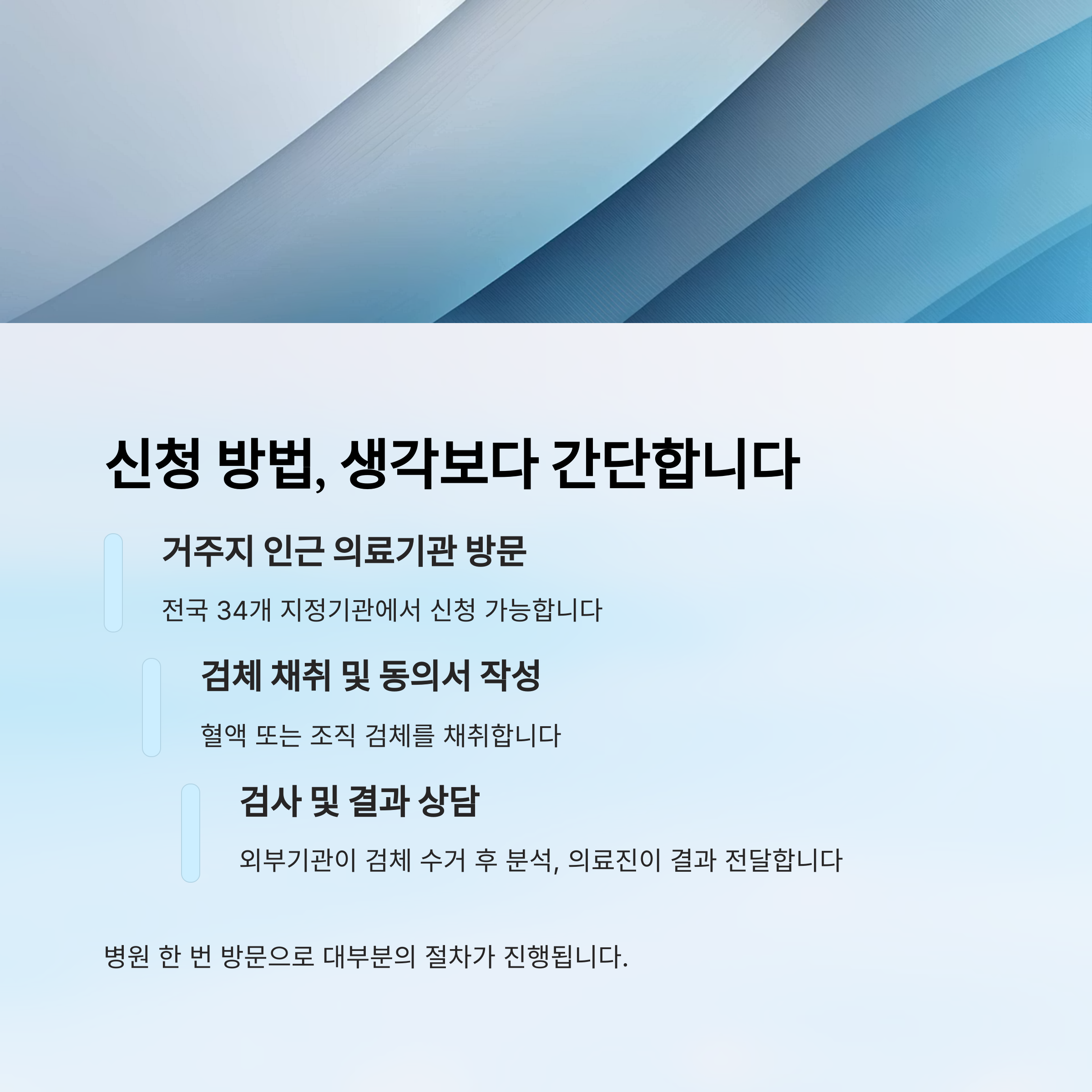복잡해 보이지만 실제로는 병원 한 번 방문하면 대부분의 절차가 진행됩니다.