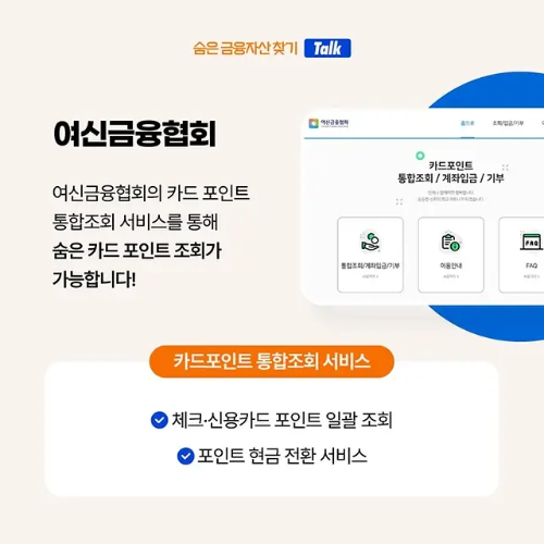 여신금융협회 에서는 카드 포인트 통합조회 서비스 를 제공하여 체크카드 와 신용카드 포인트를 한 번에 조회할 수 있습니다. 포인트는 현금으로 전환 하거나 다양한 혜택으로 교환할 수 있습니다. 이제 쌓인 포인트가 어디에 있는지 확인하고, 바로 현금화하세요.