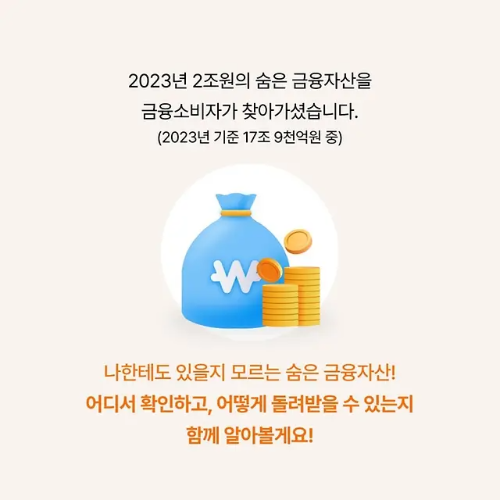 숨은 금융 자산 이란 소비자는 오랫동안 잊어버리고 찾아가지 않는금융자산입니다. 예를 들어, 휴면계좌 금융 , 실제로 있는 카드 포인트 , 게다가 예탁금 등이 포함됩니다. 금융위원회에 따르면, 2023년 기준으로 약 17조 9천억 원 의 금융 자산 중 2조 원 이 숨은 자산으로 남아있습니다.