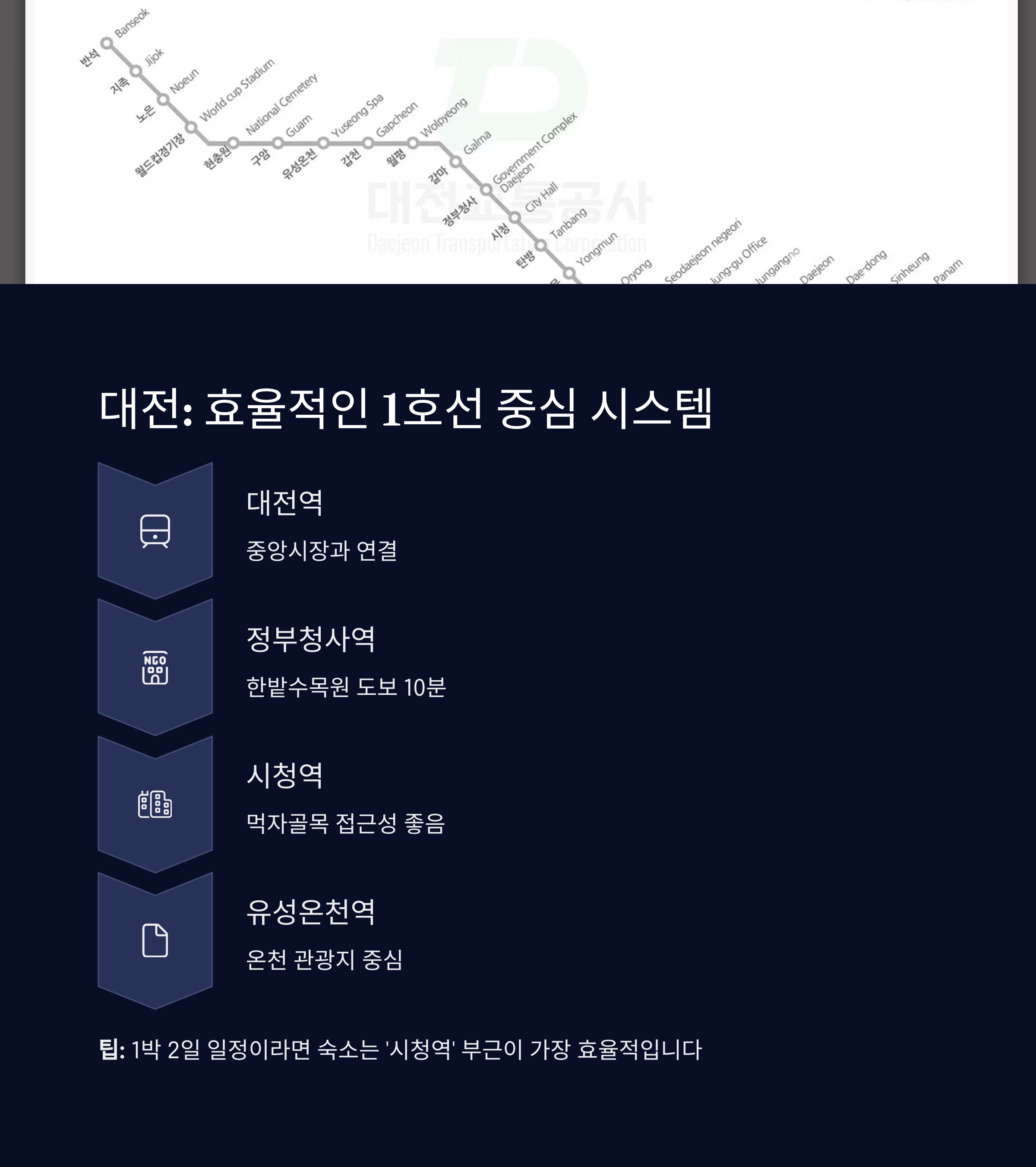 대전: 효율적인 1호선 중심, 버스와 병행 추천