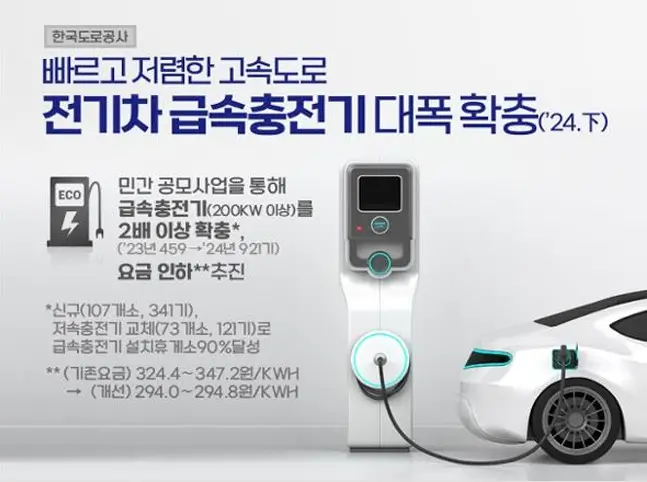 고속도로 전기차 급속충전기 확충과 요금인하 : 2024년의 혁신