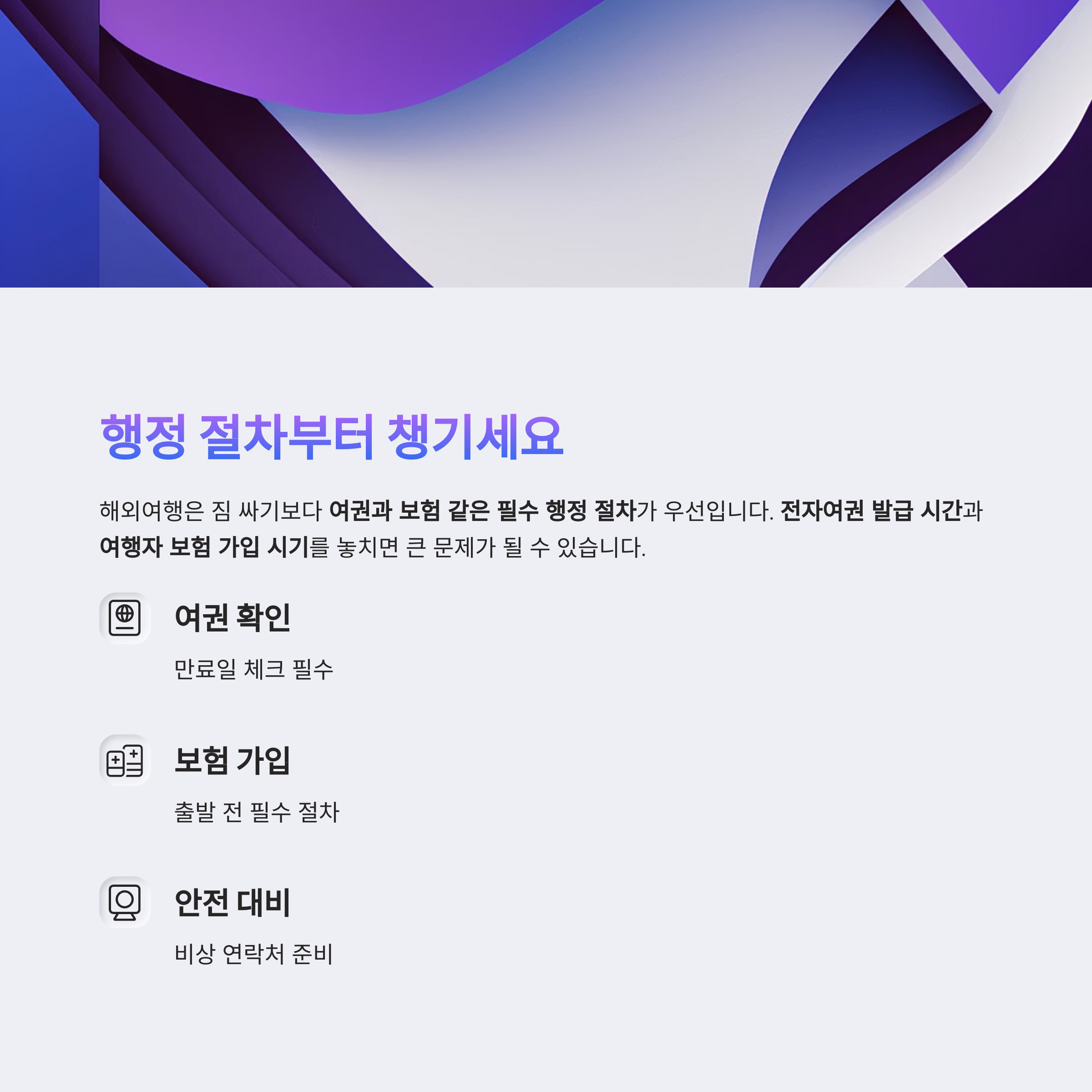 해외여행을 계획 중이라면 단순한 짐 싸기보다 여권과 보험 같은 필수 행정 절차를 먼저 챙기는 것이 중요합니다.
