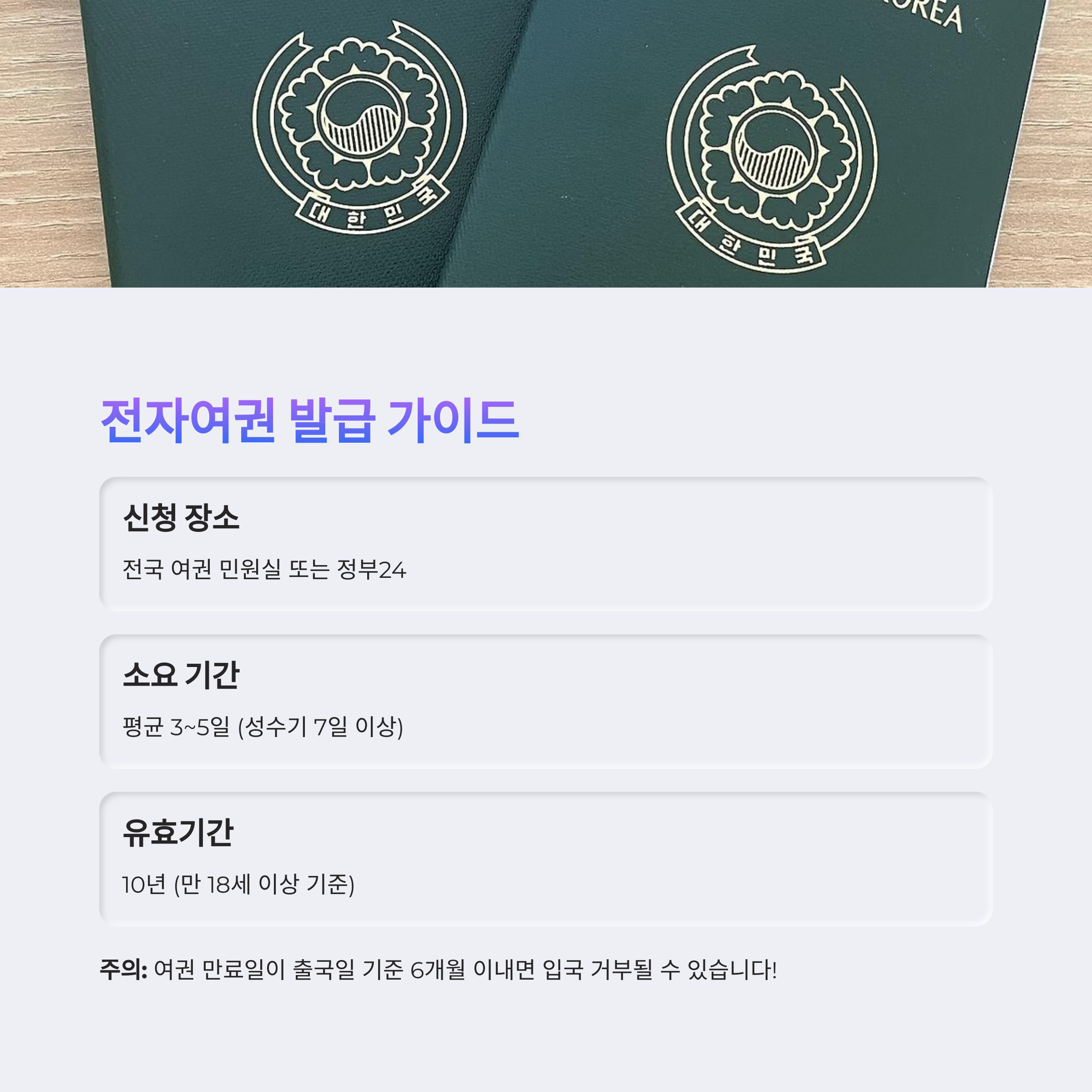 | 신청 장소 | 전국 여권 민원실 또는 정부24 (온라인) |