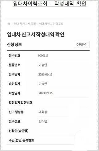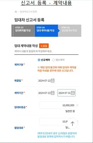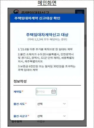 신고서 작성: 앱 내에서 신고서 양식을 작성합니다. 임대인 및 임차인의 인적 사항과 계약 내용을 정확히 입력합니다. 입력한 정보는 앱 내의 보안 시스템을 통해 보호됩니다.