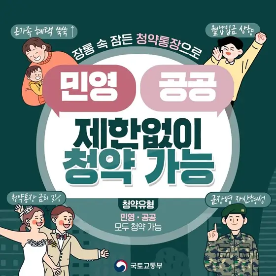 민영.공공을 모두 갖춘 청약통장, 이제 주택 유형의 제한이 없습니다!