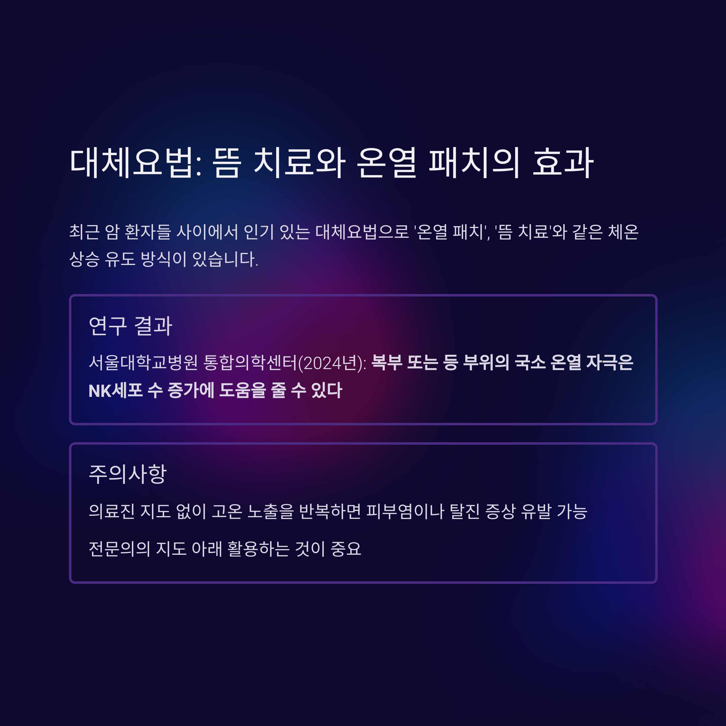 복부 또는 등 부위의 국소 온열 자극은 NK세포 수 증가에 도움을 줄 수 있다고 밝혔습니다.