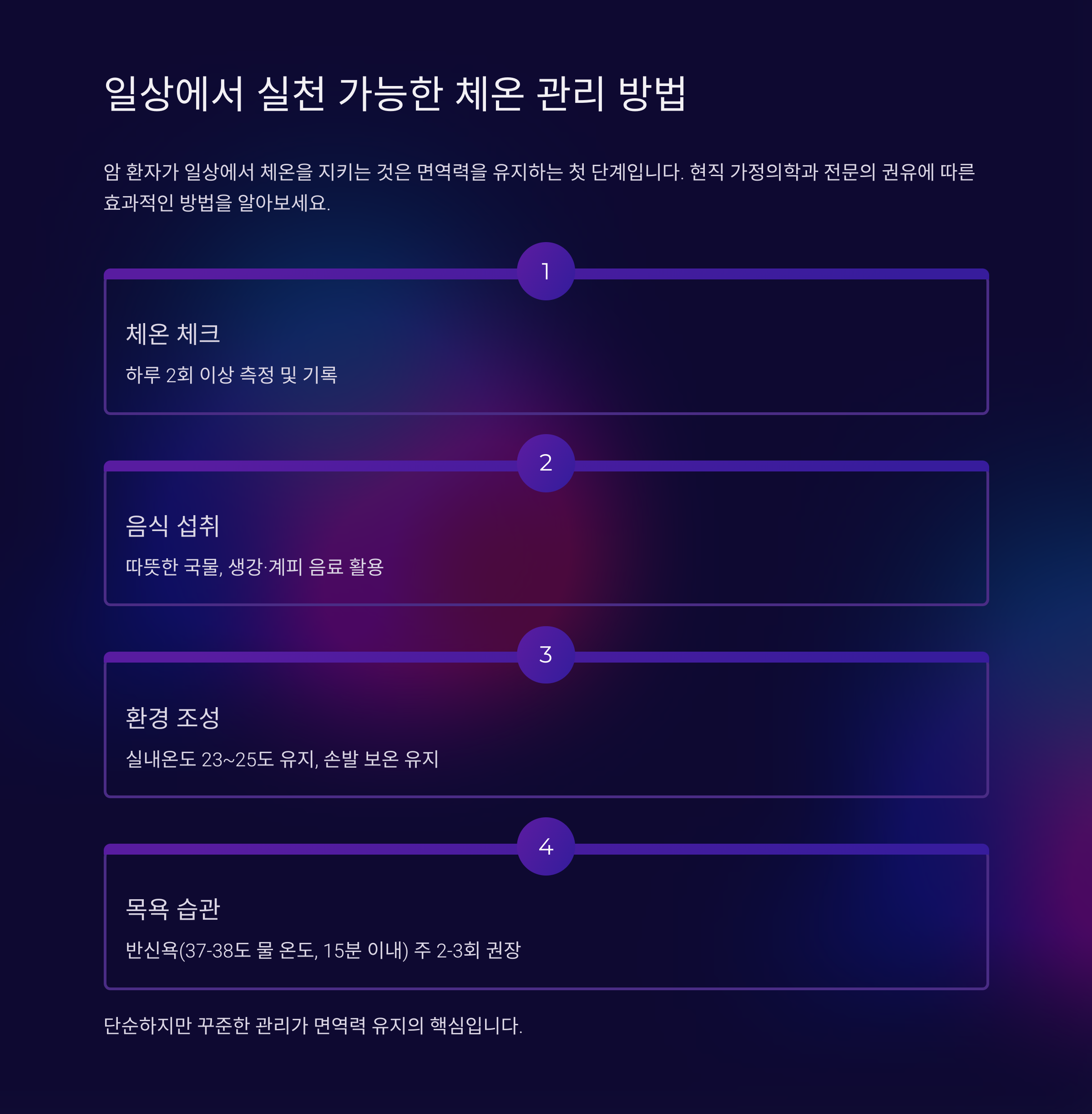 암 환자가 일상에서 체온을 지키는 것은 면역력을 유지하는 첫 단계입니다.