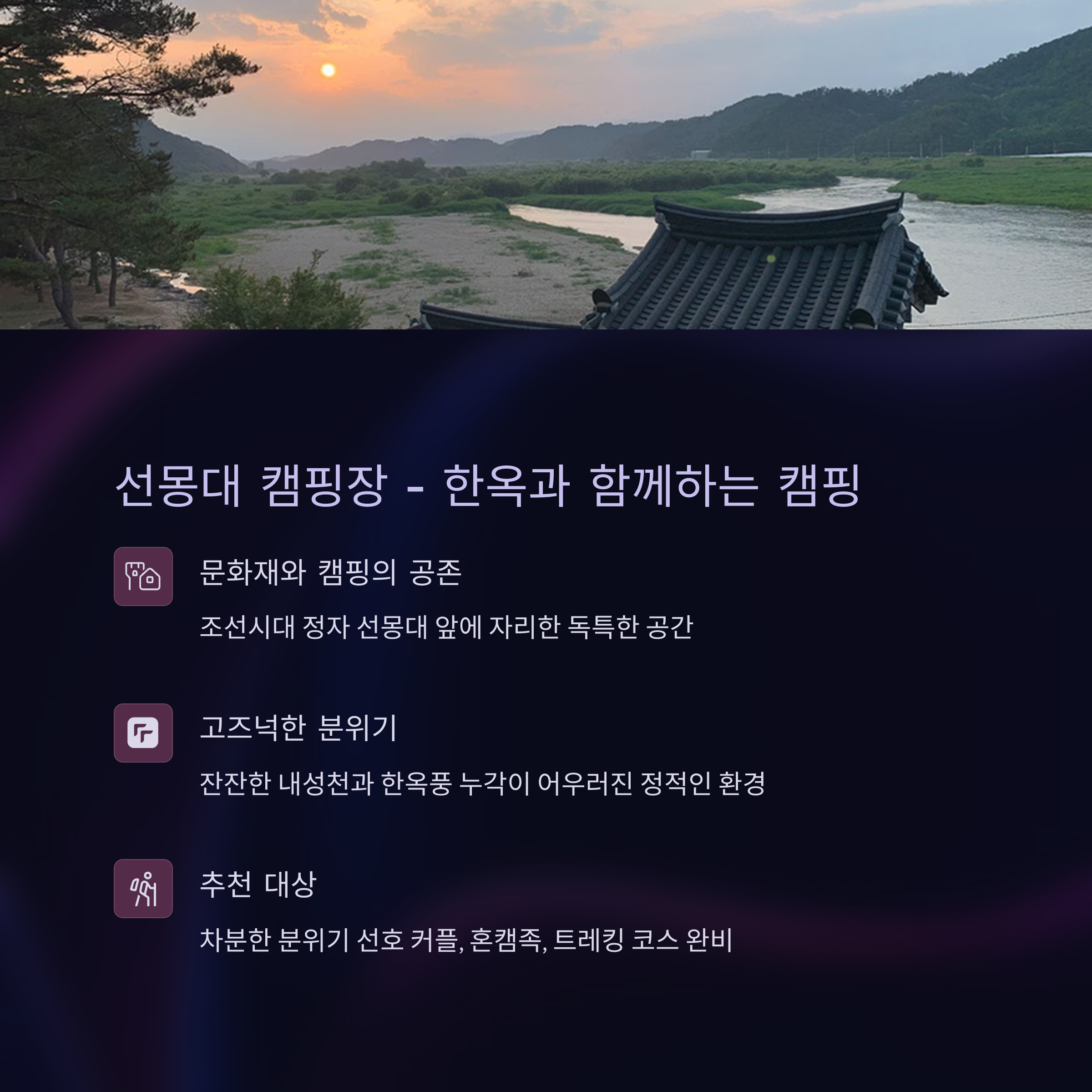 경북 예천 – ‘선몽대 캠핑장’에서 고즈넉한 한옥 풍경과 함께
