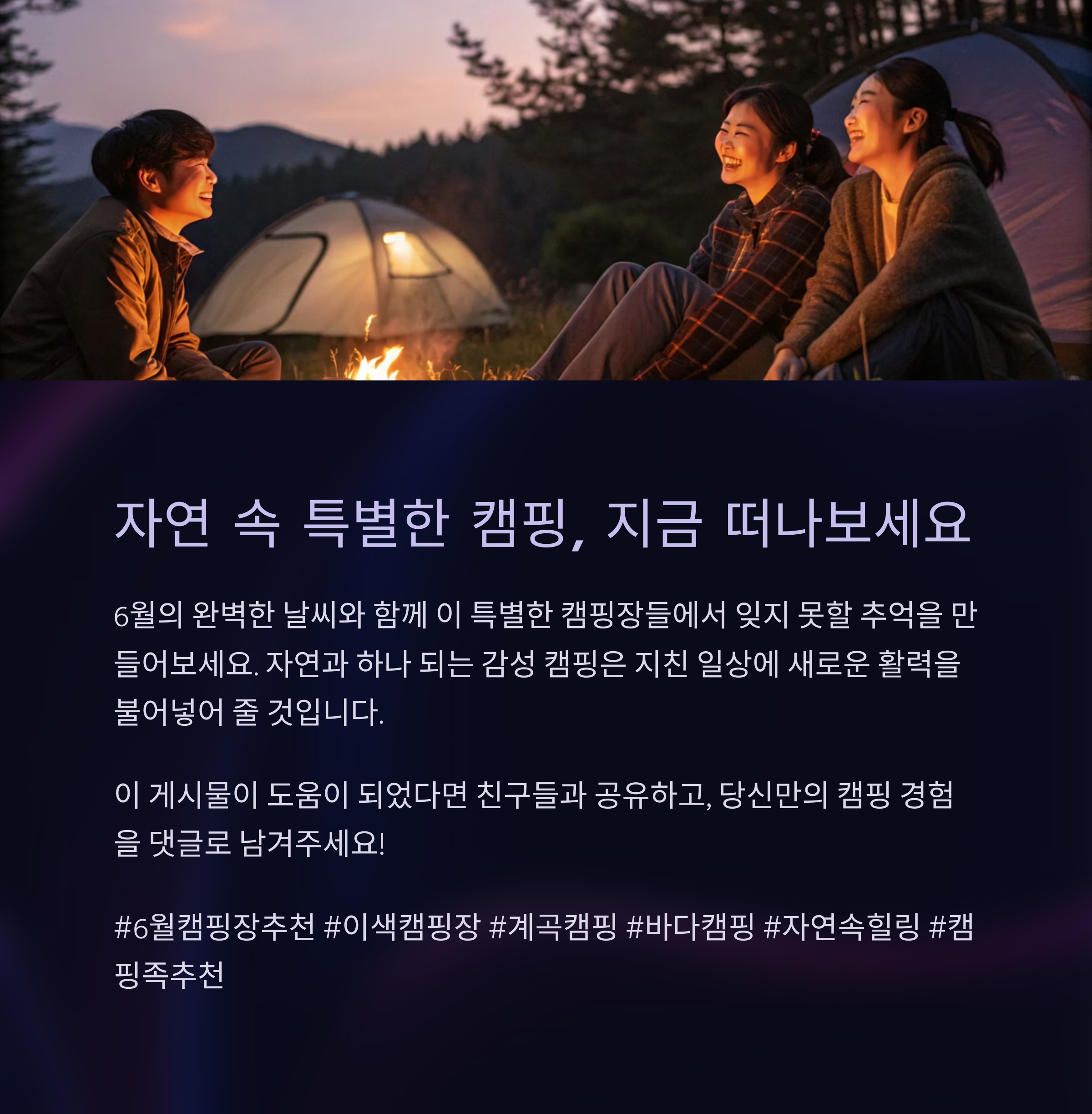 자연 속 특별한 하루를 보내고 싶은가요? 감성 가득한 캠핑 명소를 소개합니다