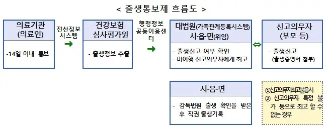 - 의료기관 통보: 아동 출생 시 의료기관이 출생 사실을 정부에 통보.