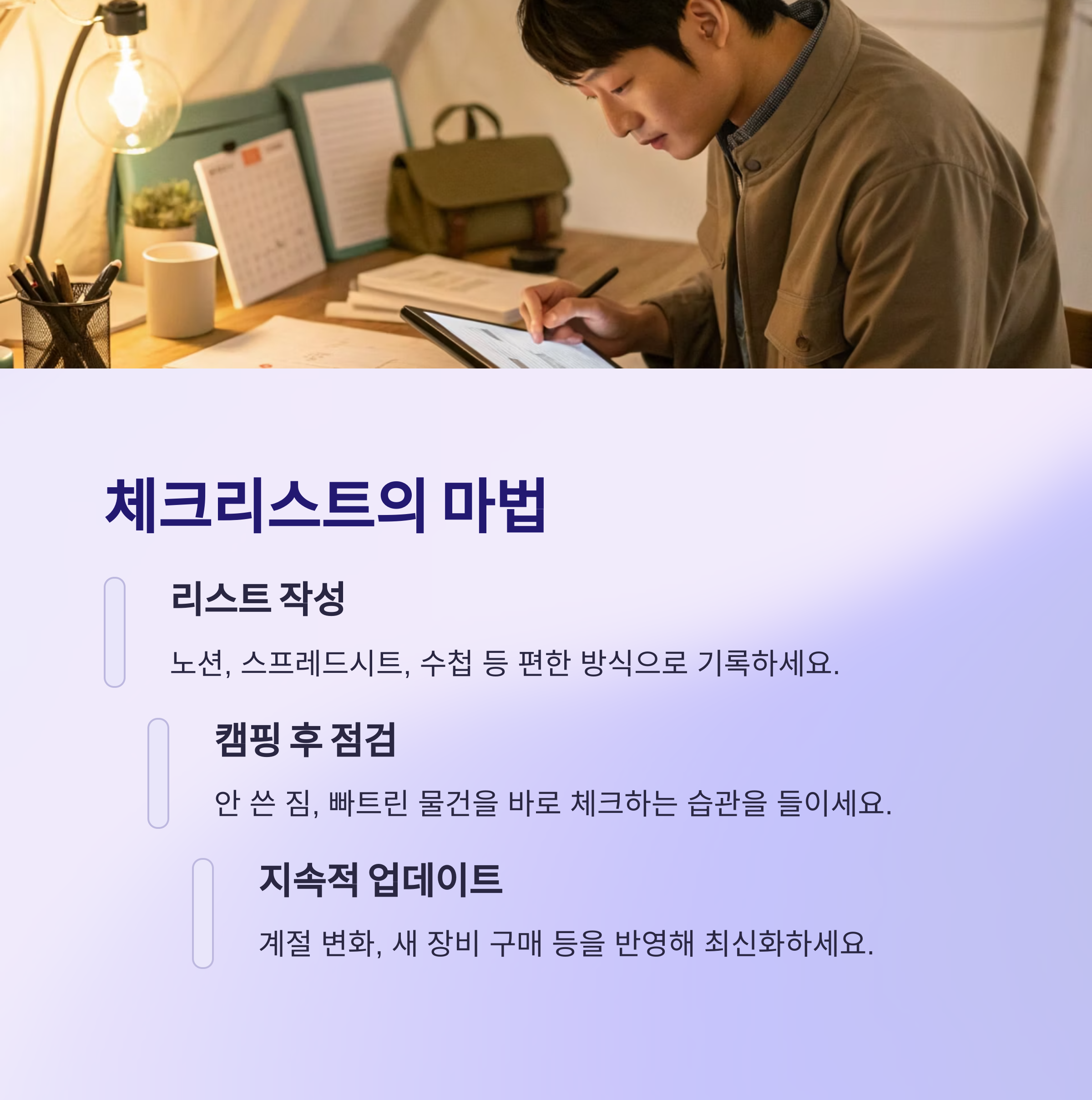 항상 최신화된 캠핑 체크리스트를 관리하세요.
