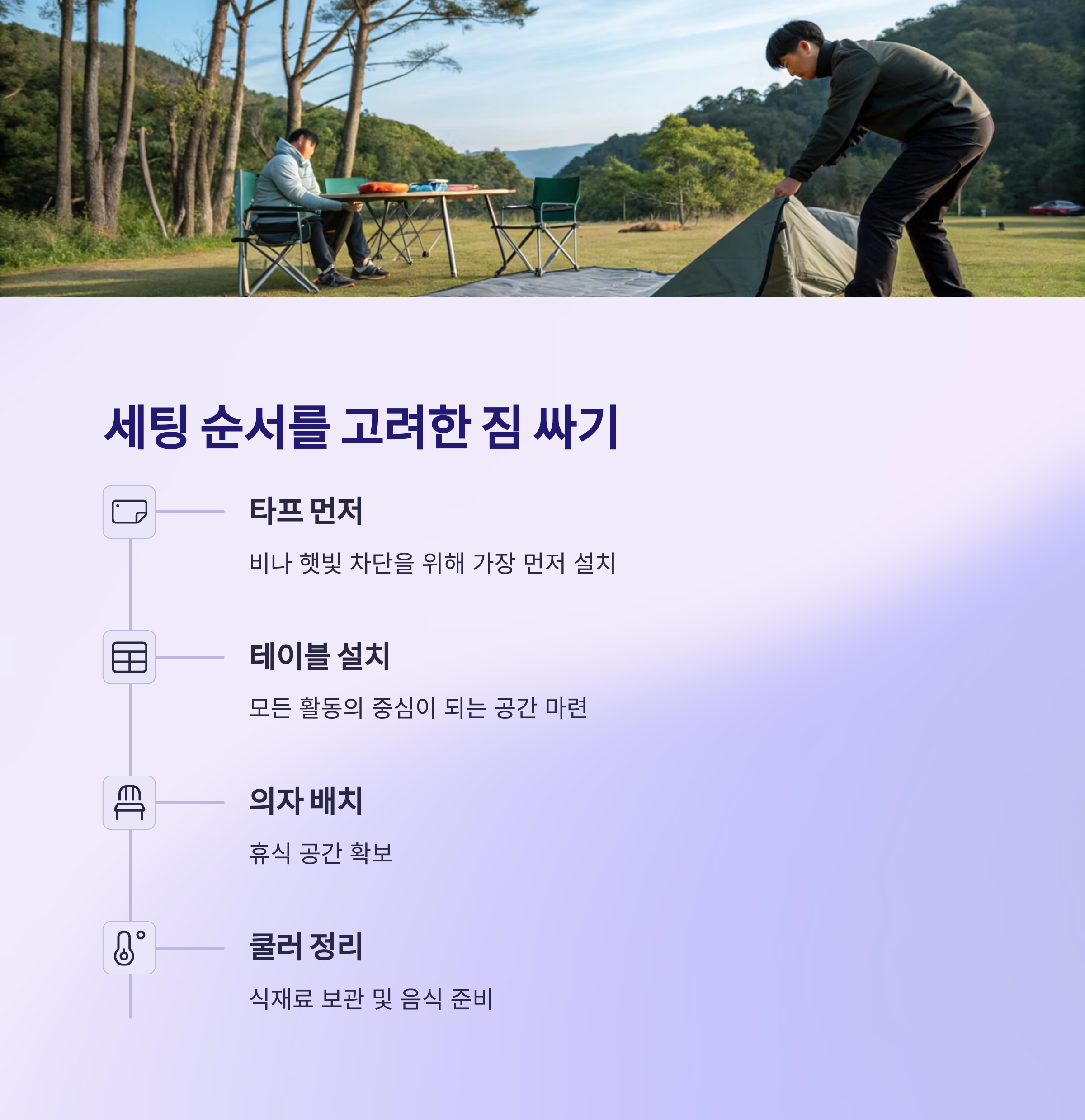 이 흐름이 정착되면 캠핑 준비와 철수가 매우 빨라집니다.