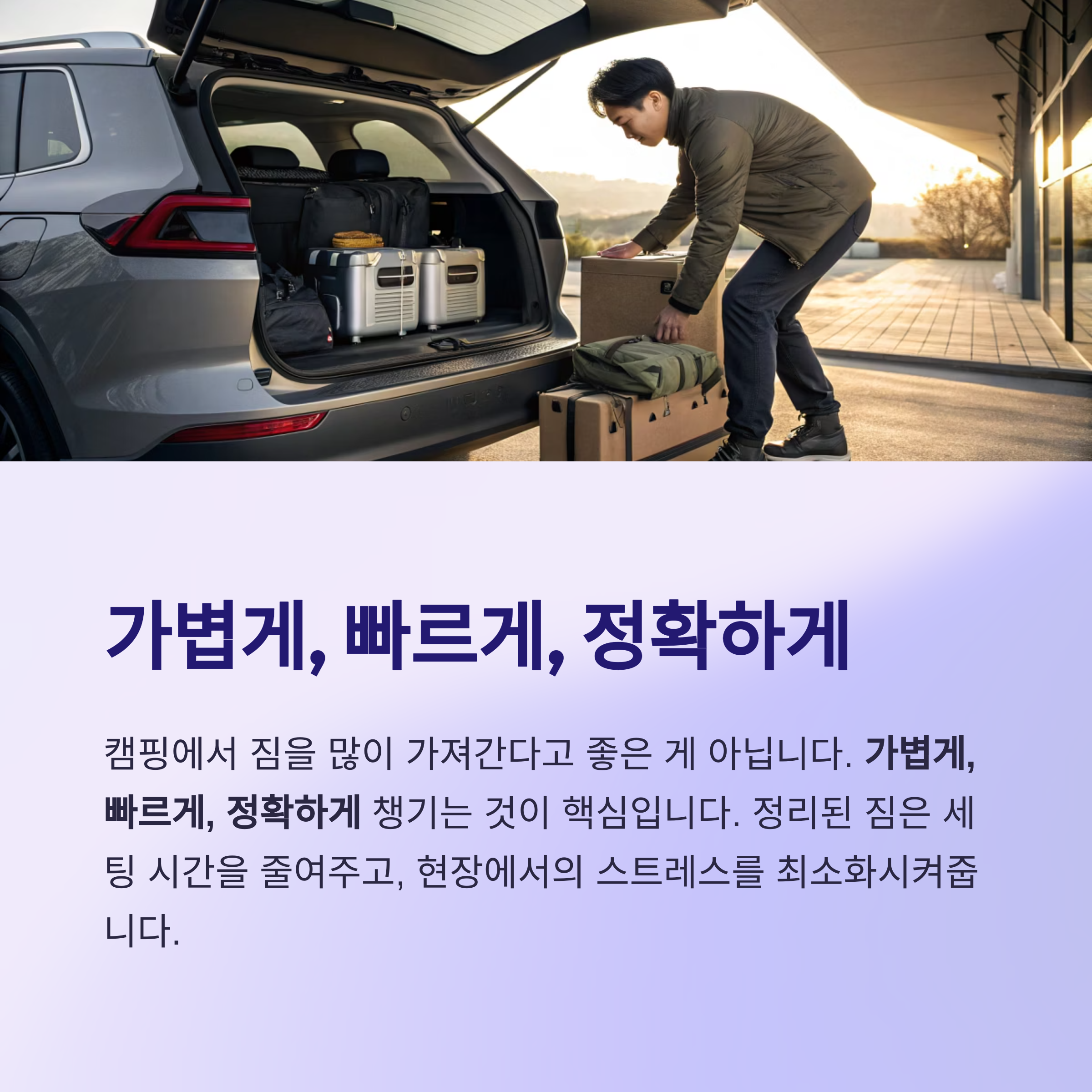 이 흐름이 정착되면 캠핑 준비와 철수가 매우 빨라집니다.