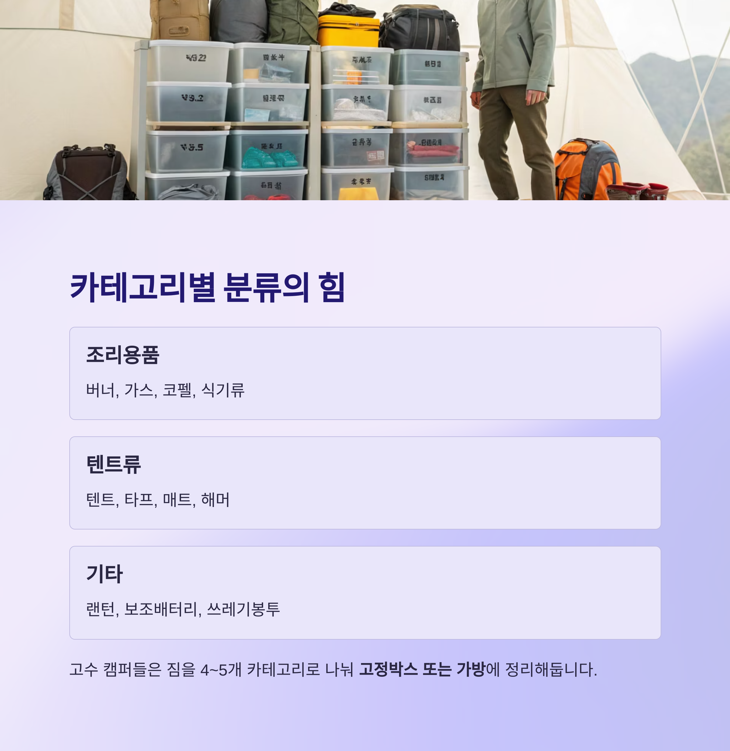 카테고리별 분류는 캠핑 짐 정리의 기본