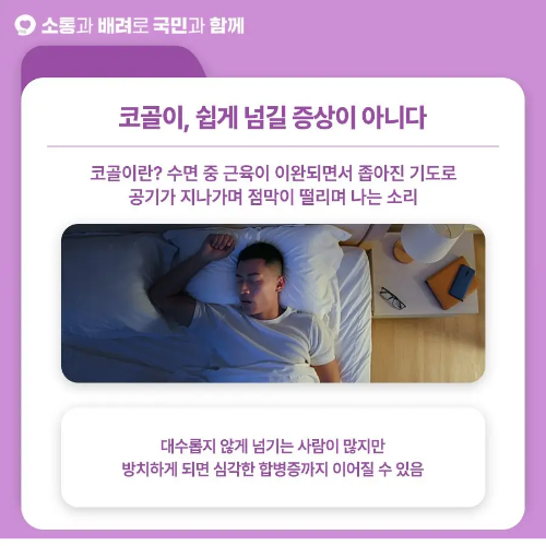 코골이는 단순한 수면 중의 불편함으로 끝나지 않습니다. 만약 심각한 경우, 수면무호흡증으로 이어질 수 있으며, 이는 다시 심혈관계 질환, 고혈압, 심장병 등의 심각한 질환으로 발전할 위험이 있습니다.