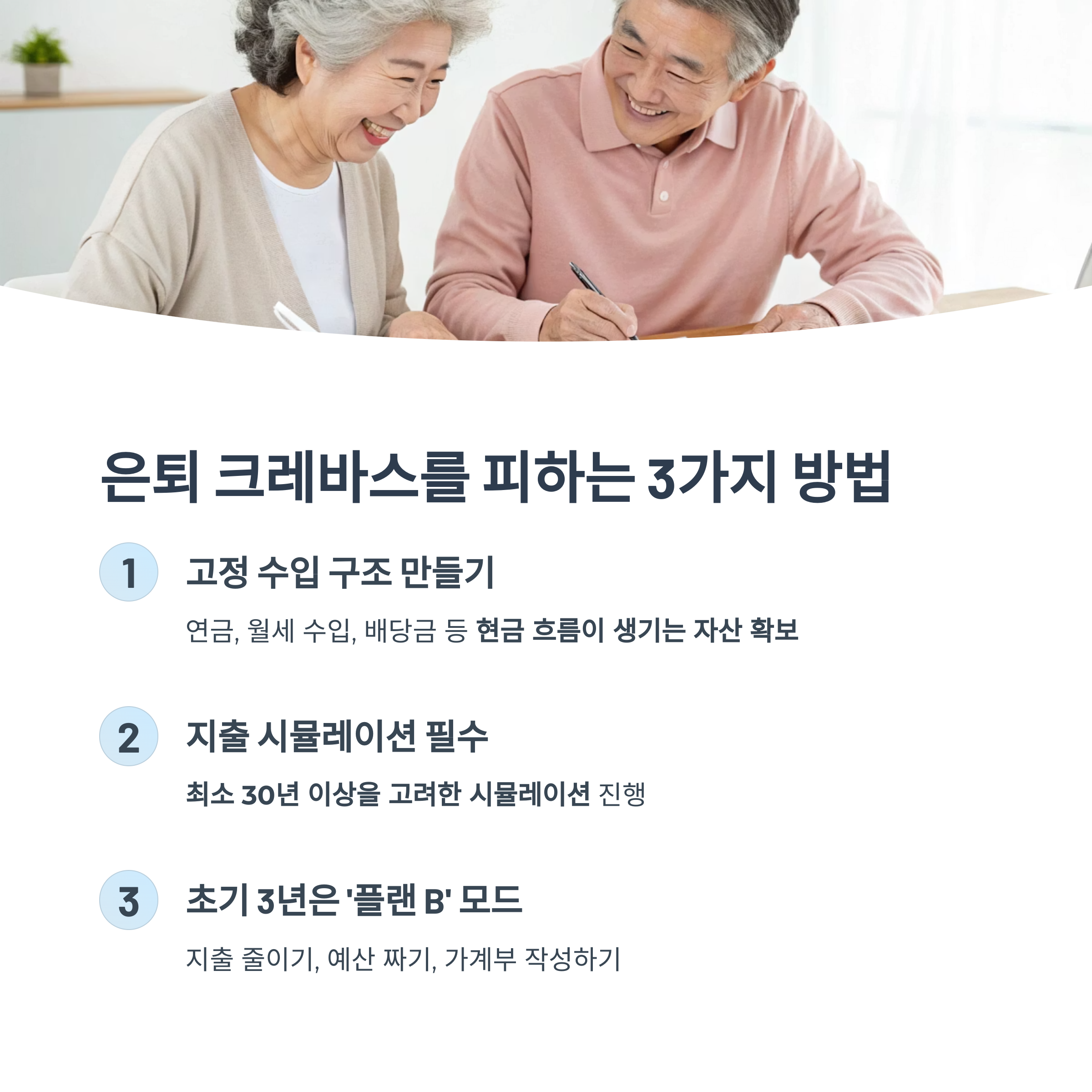 최소 30년 이상을 고려한 시뮬레이션 없이 은퇴하면 반드시 위기가 옵니다. - 초기 3년은 '플랜 B' 모드