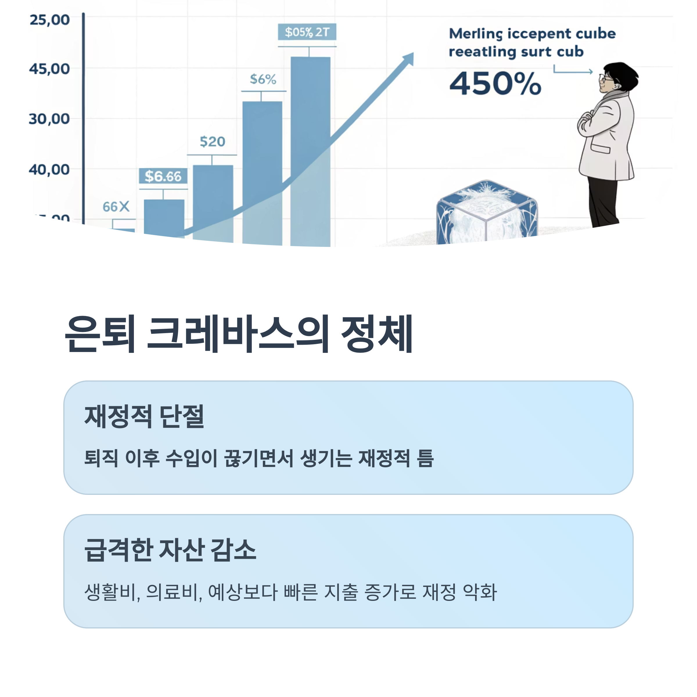 이 현상은 ‘은퇴 크레바스(Retirement Crevasse)’라고 불리며, 준비 없이 맞이하면 삶 전체가 흔들릴 수 있습니다.