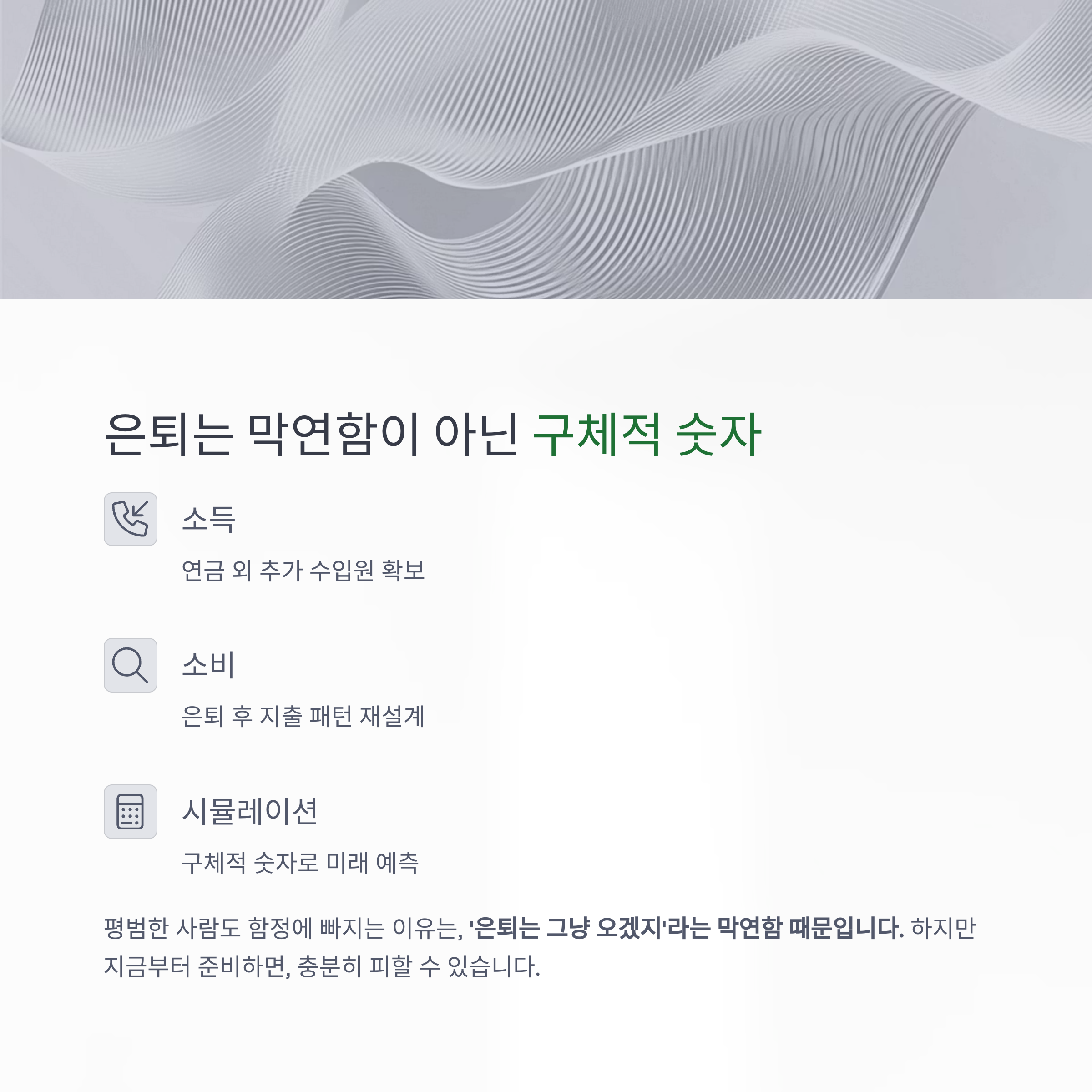 따라서 은퇴 전 3년은 소득을 늘리고, 소비를 줄이며, 현금 흐름을 설계해야 하는 결정적 시기입니다.