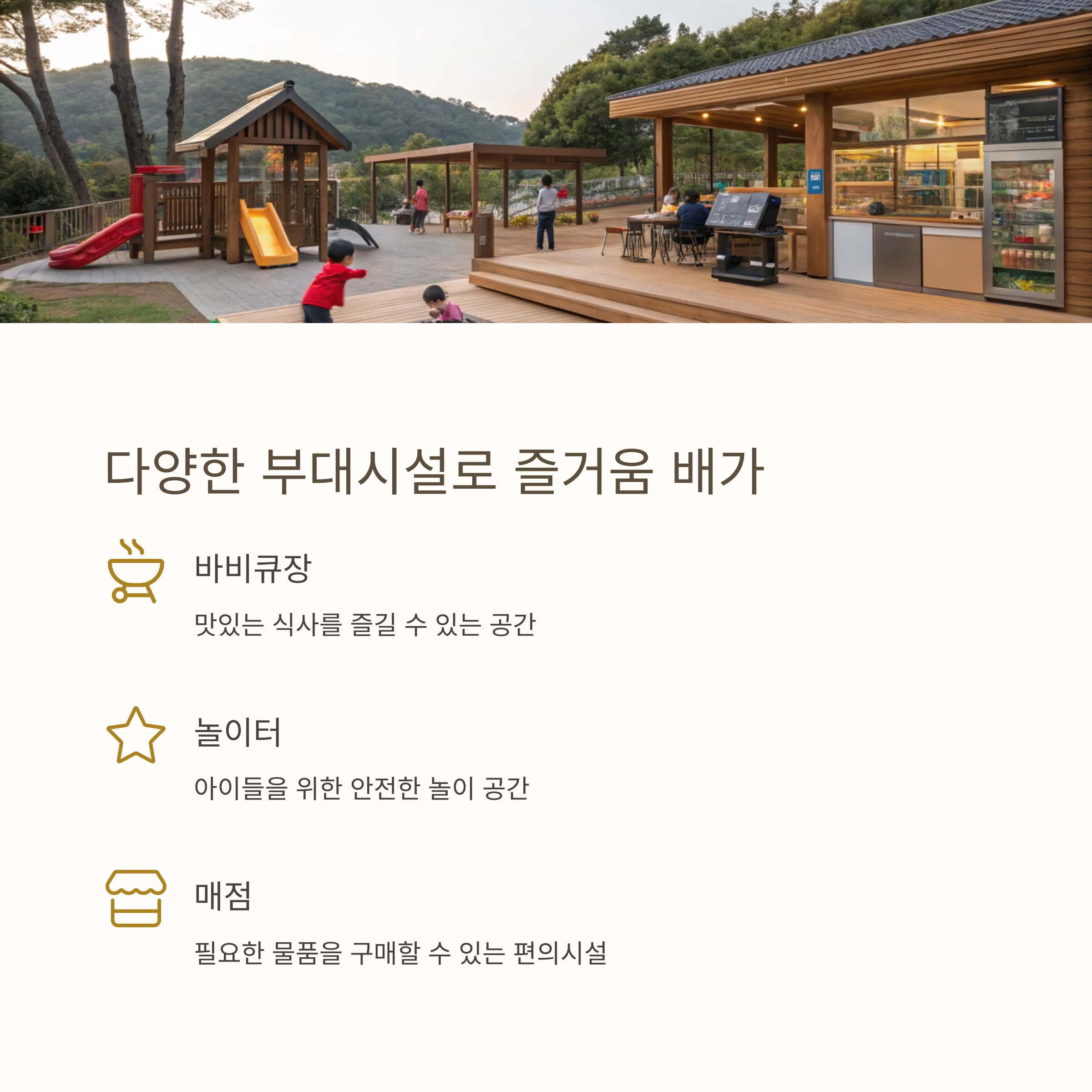 가족 친화형 부대시설이 잘 갖춰진 곳이 많다