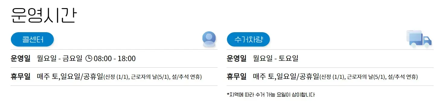 | 수거 조건 | 소형 가전은 5개 이상일 경우 수거 가능 |