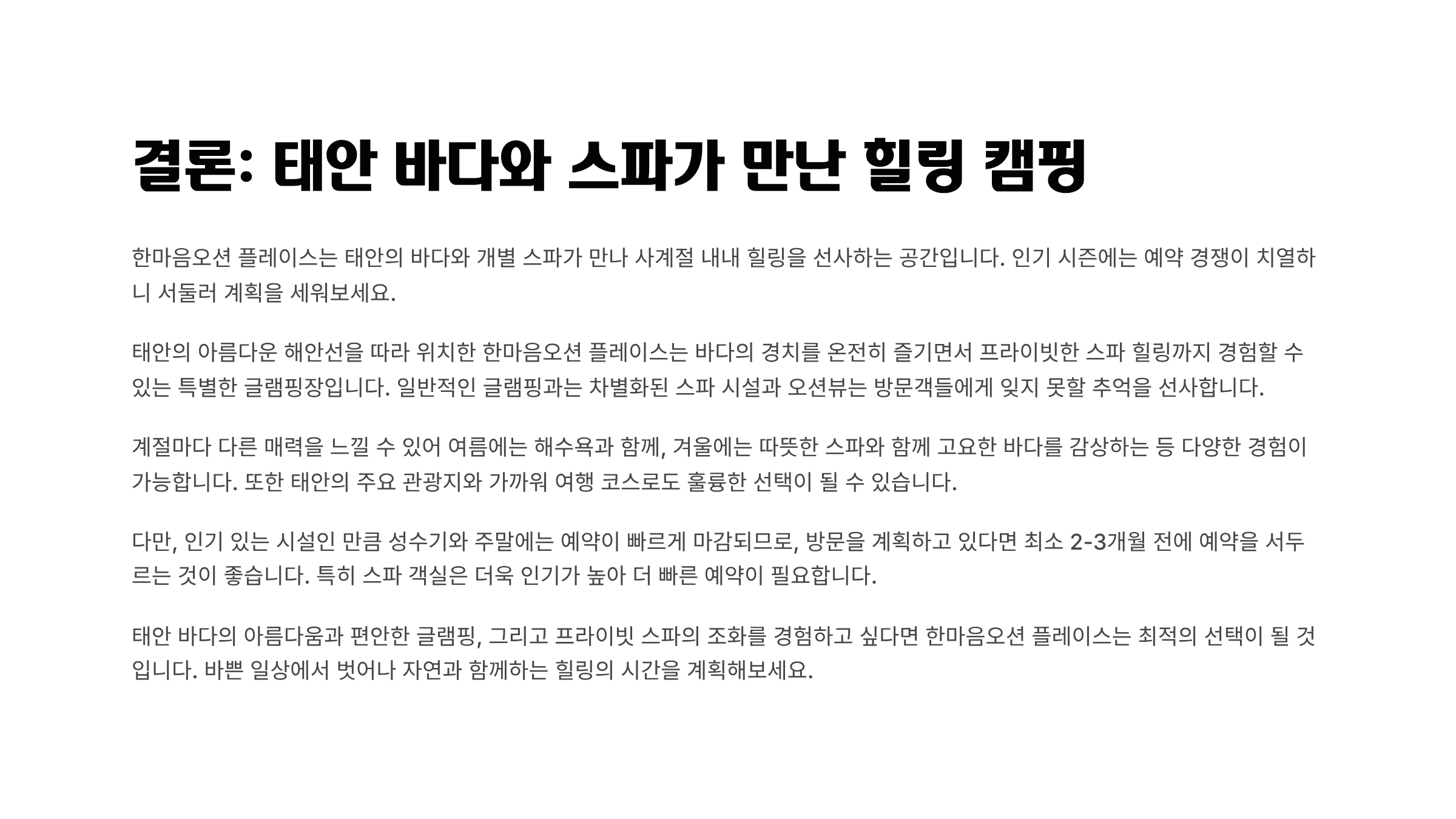 결론: 태안 바다와 스파가 만난 힐링 캠핑