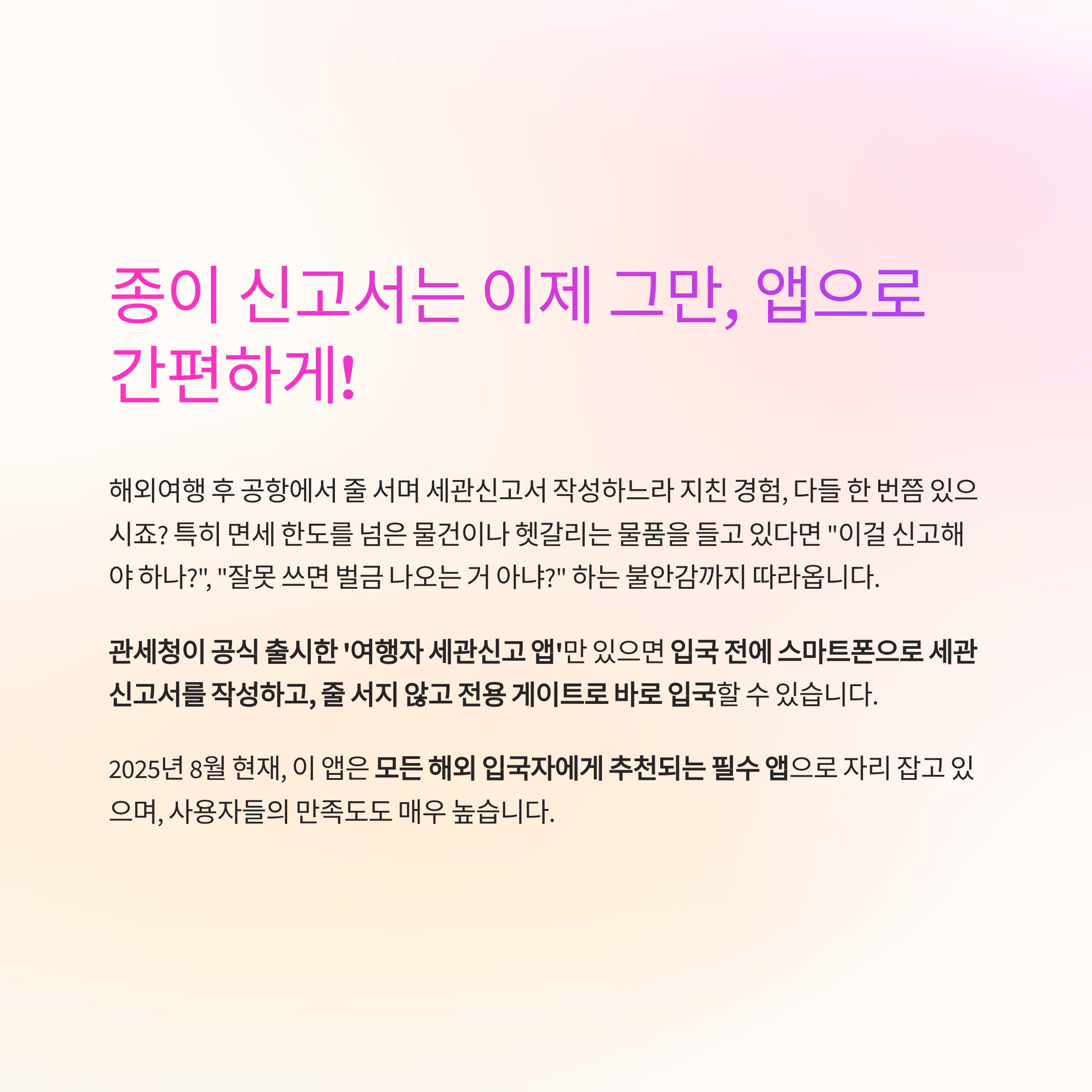 ‘여행자 세관신고 앱’은 더 이상 선택이 아니라 필수입니다.