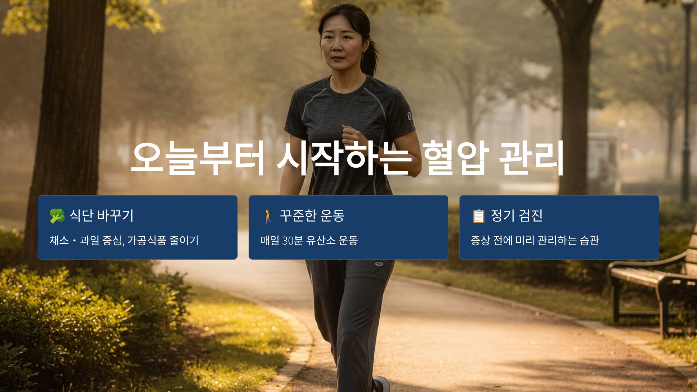 주변 이야기를 들어보면 평소에는 특별한 증상이 없다가 건강검진에서 갑자기 혈압이 높게 나와 놀라는 경우도 많습니다. 그래서 혈압 관리는 증상이 나타나기 전에 생활습관부터 관리하는 것이 중요하다고 합니다.