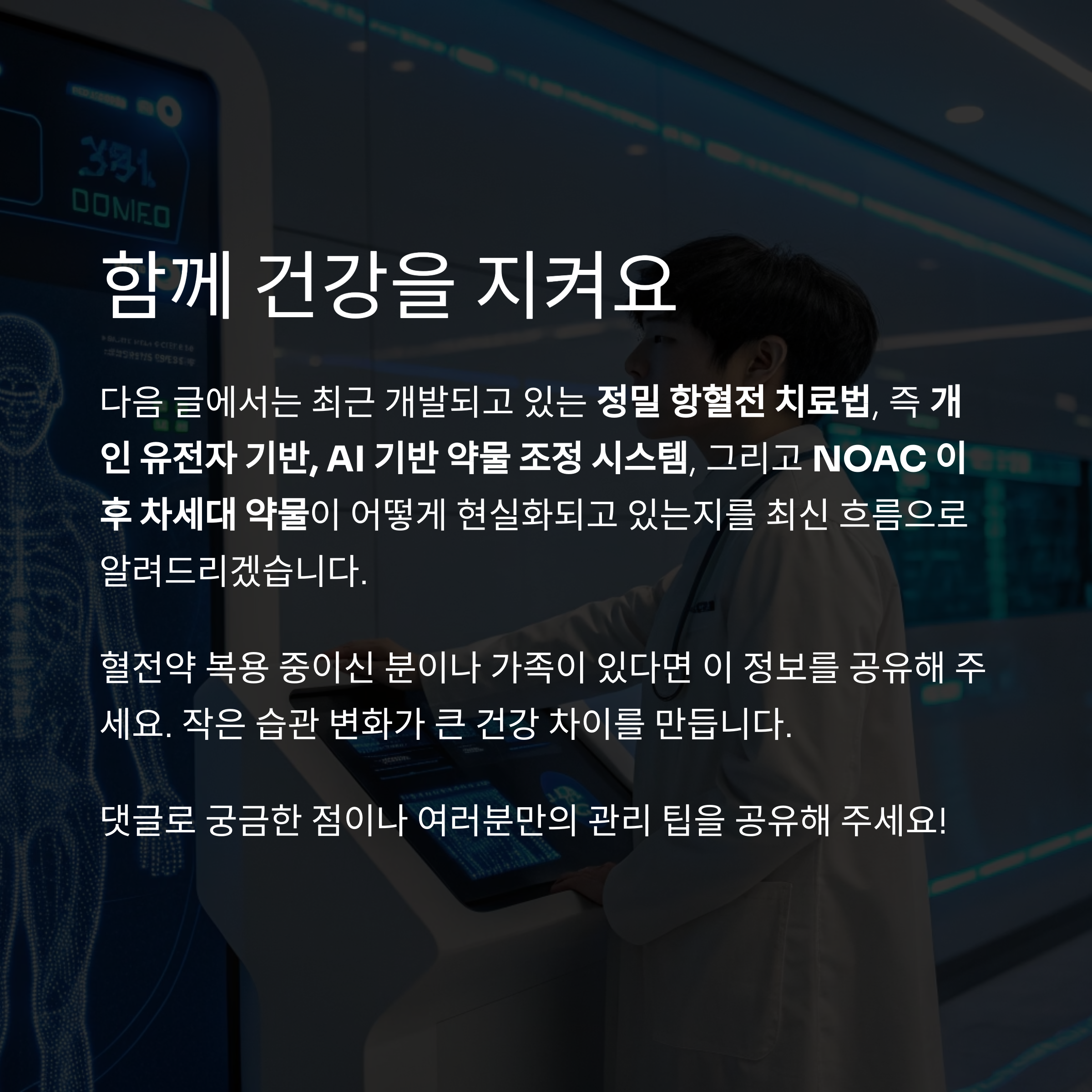 다음 편 예고: 혈전치료의 미래 – 개인 맞춤형 약물과 AI의 시대